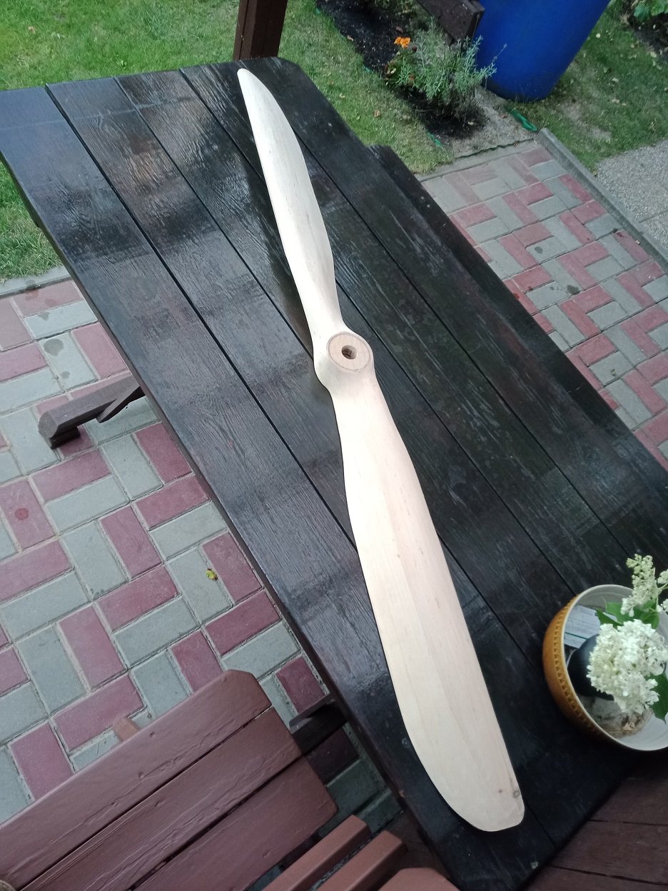 . Wykonałem szablony z tektury co 100 mm łopaty śmigła bazując się na rysunku poniżej. Kształt przyjąłem taki trochę historyczny. Długość 1500 mm.