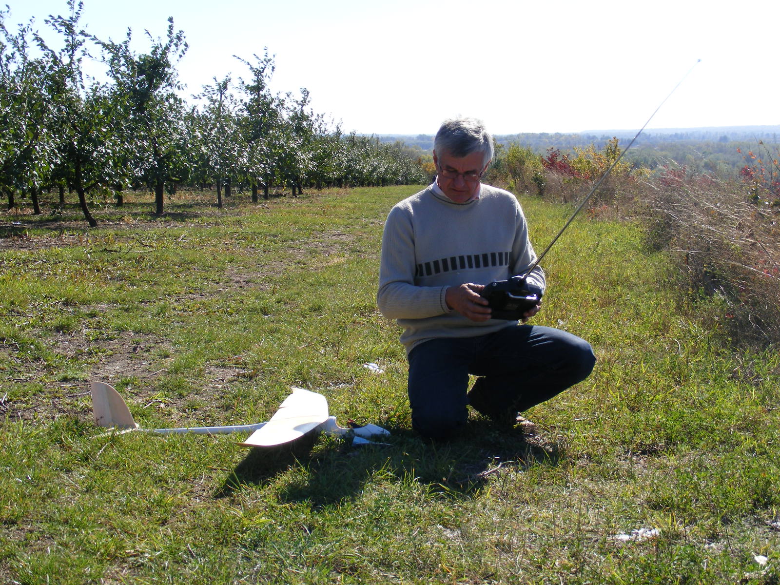 Przy słabym wietrze - powiedzmy do 4 m/s - trzeba lecieć możliwie nisko wzdłuż krawędzi i dać się zepchnąć nad kilkumetrowy pas trawy, potem " na chama " w dół i siedzisz Dość trudne i stresujące , zdarzało mi się uszkodzić model. Pomaga podniesienie lotek w górę . Zazwyczaj udaje się za którymś z kolei razem . Niestety kamieniołom zarasta, na zboczu to pikuś, ale krzaki na krawędzi są coraz wyższe i raczej o tym sposobie lądowania trzeba będzie zapomnieć - może to i lepiej ? Jak wieje silnie, można przejść jakieś 200 metrów wzdłuż krawędzi ( oczywiście cały czas pilotując model ) , tam sad się kończy i zaczyna pole na którym można bez problemu wylądować o ile w tym czasie nic na nim nie rośnie . Nie wiem , cz zwróciliście uwagę na kształt płatów modelu którym latam - a są to płaty wykonane w technologii styro - fornir