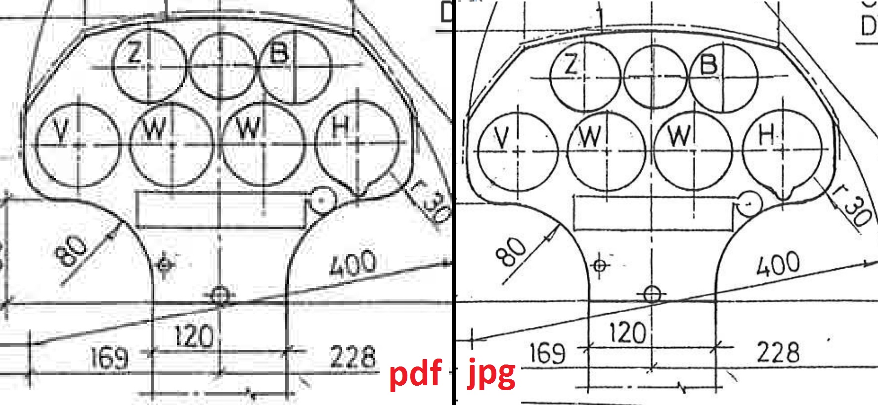 Plany SZD Junior 1.jpg zajmują prawie 8 razy więcej niż pdf i odbija się to na jakości. Kompresja w pdf'ie jest za duża. Poniżej załączam porównanie - najlepiej oglądać w powiększeniu, klikając na zdjęcie. Różnica jest znaczna.