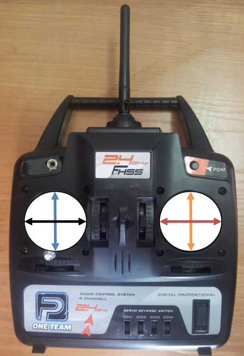 czerwony- lotki – w prawo ( samolot obraca się w prawo )