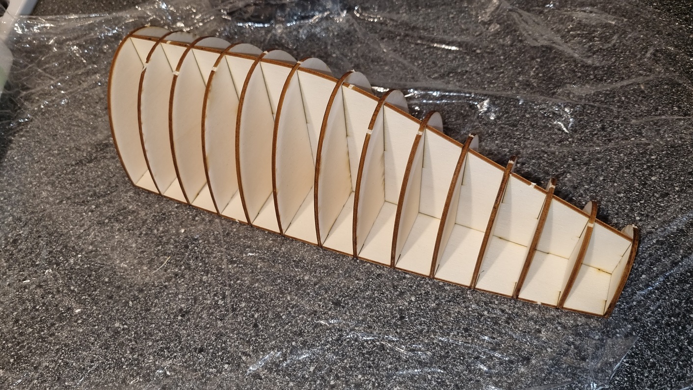Okleiłem skrzydła, czeka mnie dużo szlifowania. To co na zdjęciu 1138g.