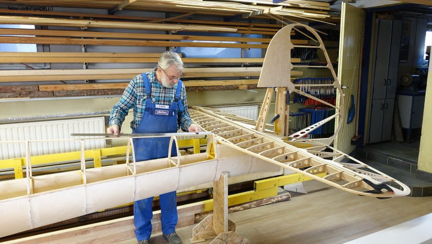A wręgi są rożne, wielkości listew dobrane do obciążeń. Pierwsze dwie wręgi są jednostronnie zamknięte, nr 3 posiada obszary dwustronnie kryte sklejką (wręga podwozia), nr 4 jednostronnie z obszarami dwustronnymi a wręga w sekcji podwozia głównego to już kawał "kloca".