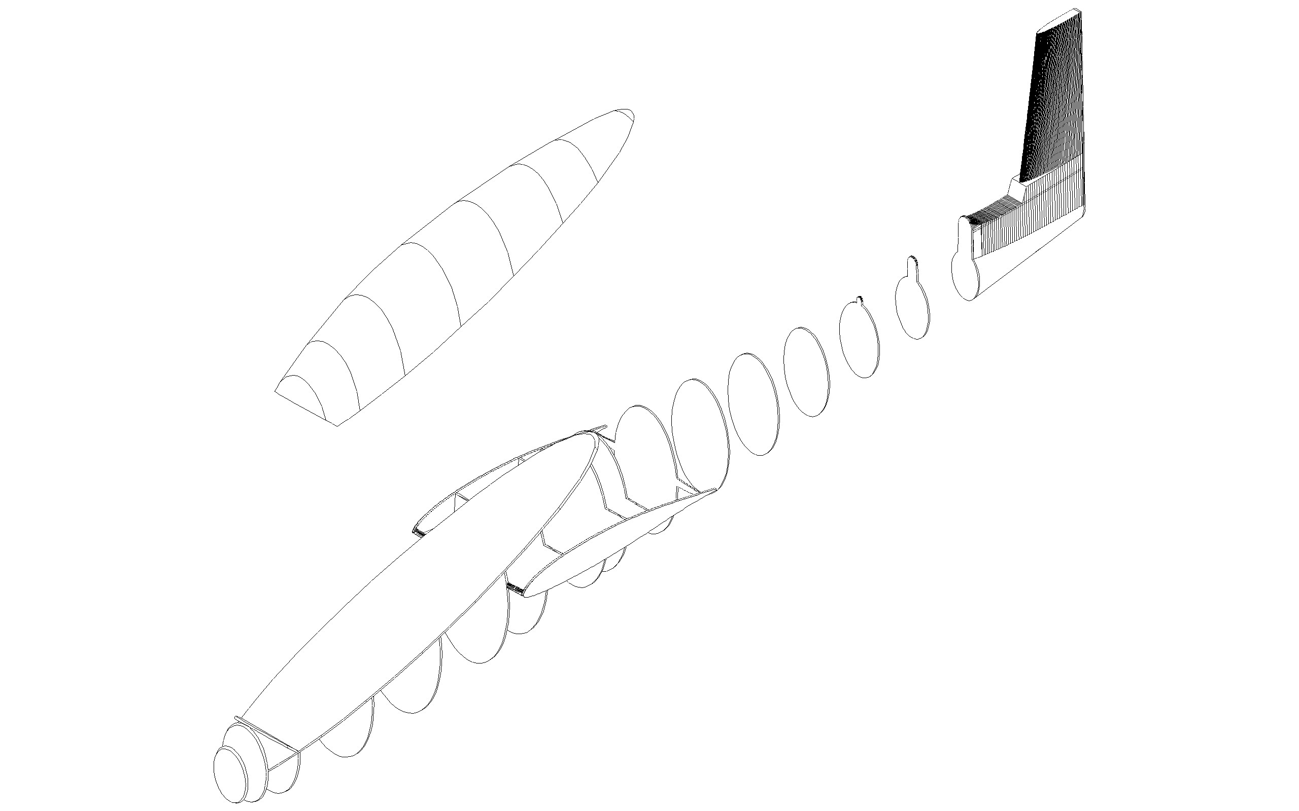 Podjąłem radykalne kroki odnośnie mocowania serwa, zmieniłem kąt dźwigara głównego co dało mi 3mm więcej miejsca , przesunąłem tylne dźwigarki do tyłu o 6mm. Te 9 mm to bardzo dużo. Teraz wystarczy przerysować wszystkie 22 żeberka , przesunąć tylny łącznik skrzydła, poprzecinać na nowo kadłub i będzie ok.