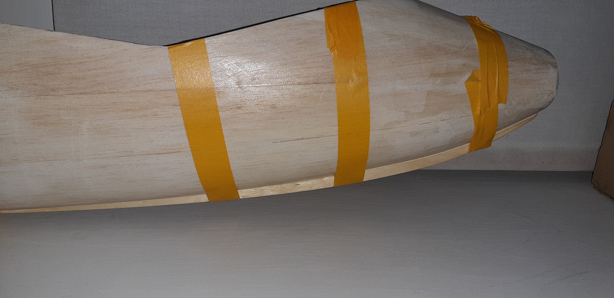 Wkleiłem płozę- 3 warstwy balsosklejki. Będzie utwardzona żywicą i zalaminowana razem z kadłubem.