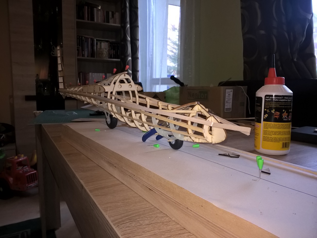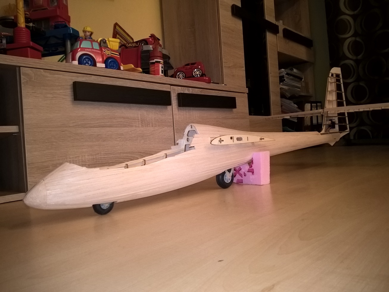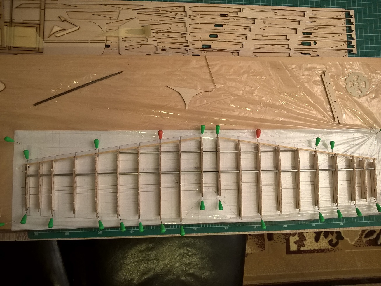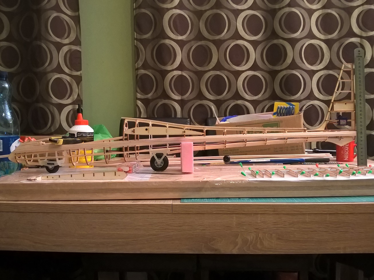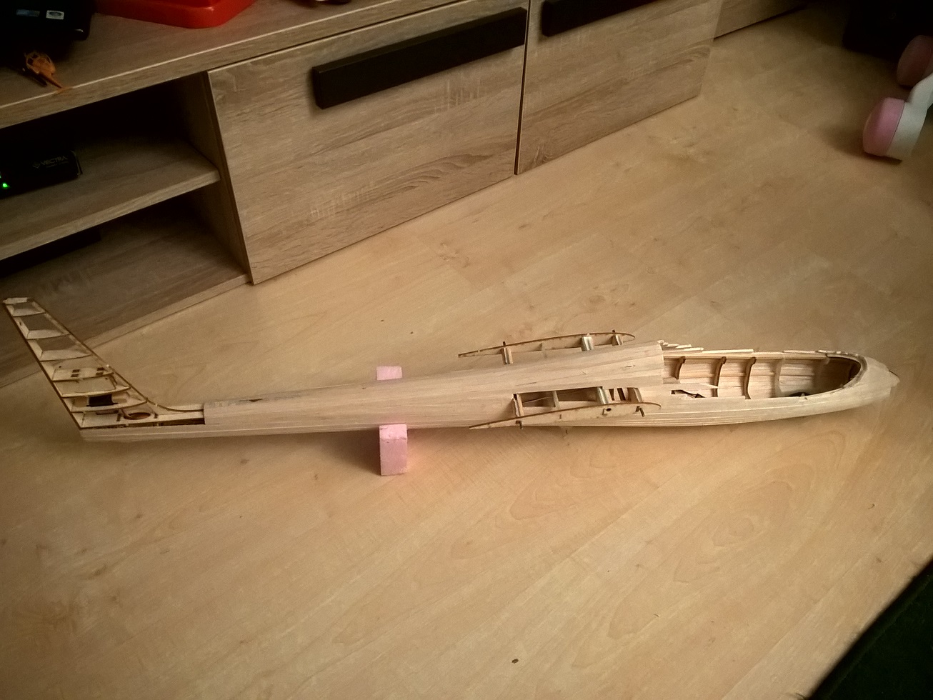 Jedyny minus to może cena, stosuję balsę 3mm, gdzie poszycie ma mieć 2mm (właśnie po to by było z czego szlifować: zrobił tak Sławek w swoim Kobuzie 2600mm, jest to genialne, nie wiem czemu sam na to nie wpadłem