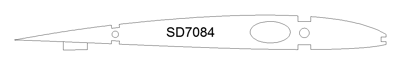 Zmieniłem otwór na eliptyczny, zasadniczo różnica w wielkości mała, a pewnie żebra będą mocniejsze. Żeberka będą z balsy 2 mm, kesony z 1,5 mm, do tego nakładki na żebra z tej samej balsy, dźwigary z sosny 8x3, pomocnicze z sosny 5x2, z wypełnieniem balsowym. Łączniki płatów, jak to u mnie bywa, z pręta sprężynowego fi 5 mm, pomocniczy fi 3 mm w pochewkach z rurek z duralu. Natarcie sosna 3x3 mm, na to balsa 2 mm i 4 mm, ta ostatnia po przyklejeniu kesonów. Spływ z dwóch listew balsowych 1,5 mm , szlifowany. Czyli zupełna proza modelarska