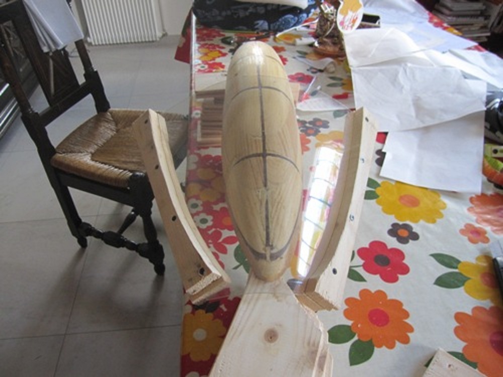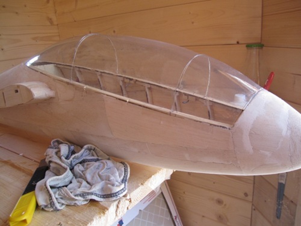 Po podróży prace nad Bocianem ruszyły jak z kopyta. Nawet w sensie dosłownym bo po kilku nieudanych próbach ze styropianem musiałem wystrugać na kabinę solidne kopyto z sosny przestrzegając planowych gabarytów.