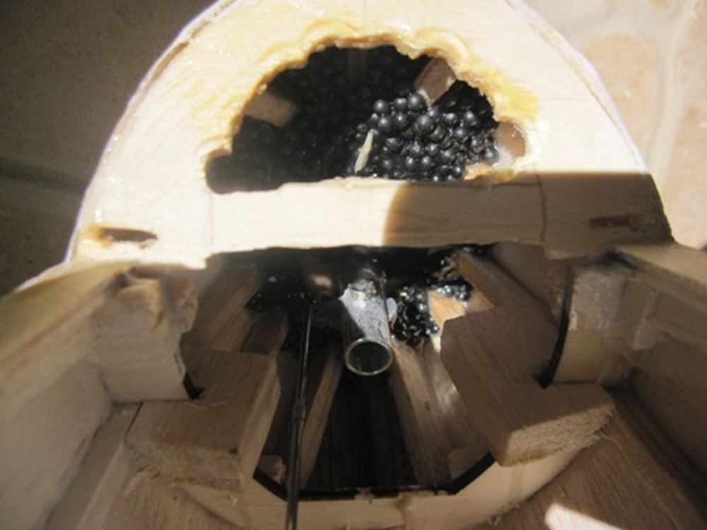Część ołowianego balastu zalałem żywicą w górnej części dzioba (ok 240g) pozostawiając resztę (ok 120g) narazie luzem na spodzie pod zaczepem bo tam nie było zbyt dużo miejsca. Nie wiem czy takie rozłożenie balastu (więcej na górze niż na spodzie) nie bedzie niekorzystnie wpływało na zachowanie w locie...