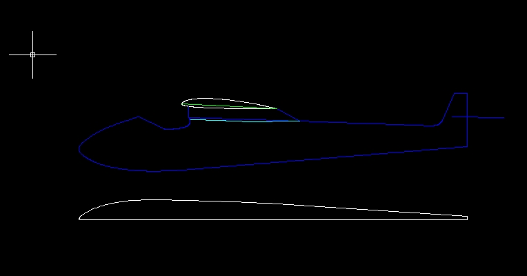 Poniżej moja chyba już piąta wersja kadłuba..... o ile obrys boczny można jakoś wypośrodkować, to obrys z widoku z góry to totalna niewiadoma, obrysowany z dostępnych planów i przeskalowany do kadłuba nie pasuje. Próba wyrysowania wręg kończy się jakimiś potworkami, zupełnie nie pasującymi. Zmieniłem szerokość kadłuba, tak aby obrysy wręg były "foremne" i ładnie eliptyczne. Taką przyjmuję wersję i właściwie rysowanie zaczyna się od początku..... Nie myślę już o Sokole jako makiecie, nie ma takiej opcji. Chciałbym tylko aby model nareszcie powstał i poleciał. Skala 1:5, profil SD7084, rozpiętość 230 cm.