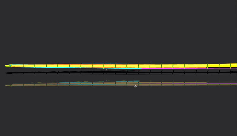 rzut podłużny płata z przeskalowaną wysokością profilu - końcówka ma rzut podłużny trapeza, a oś natarcia stanowi prosta.