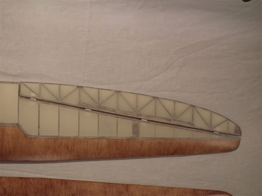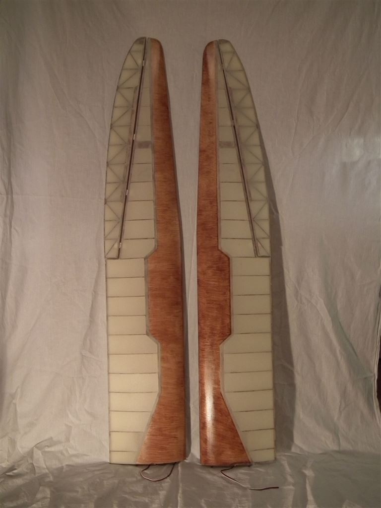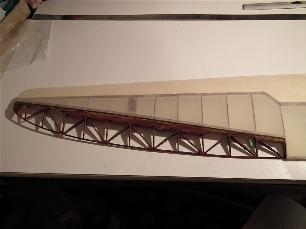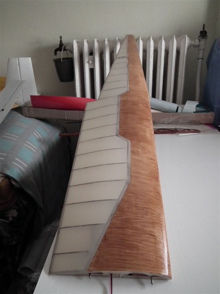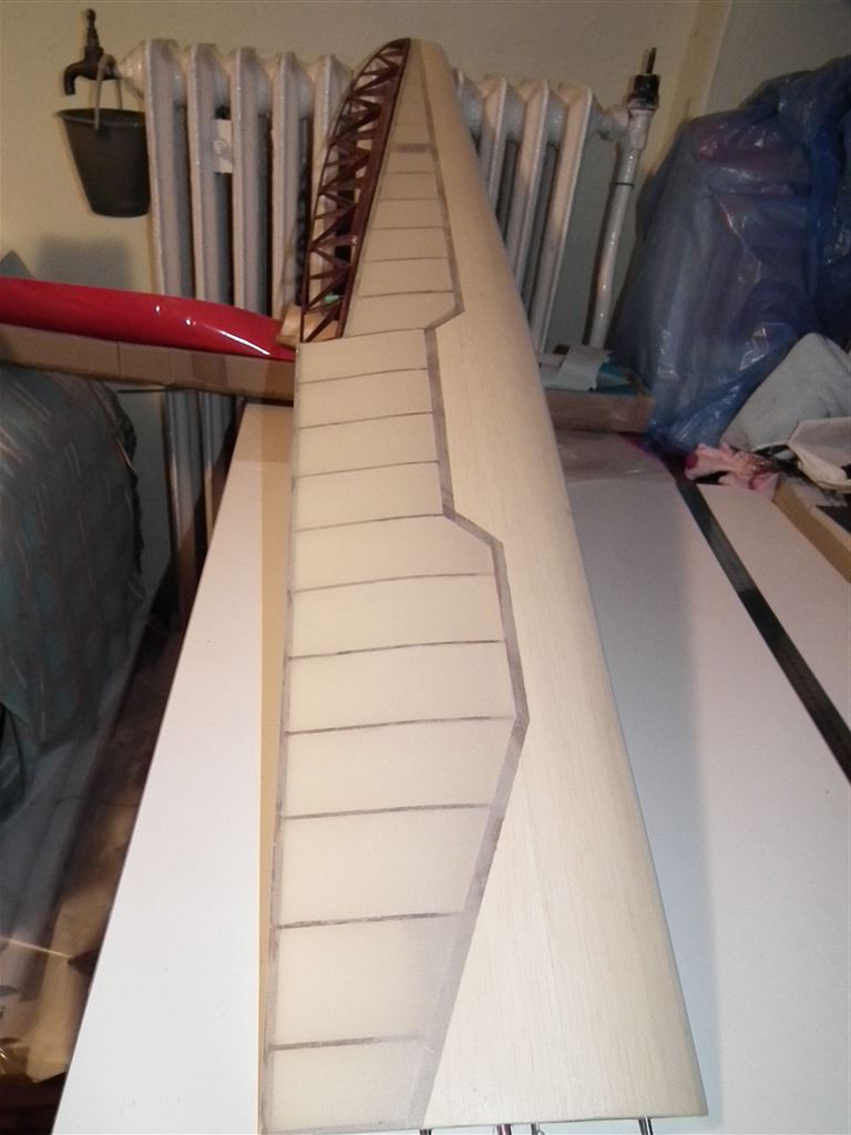 Pomału skrzydełka zaczynają wyglądać :) konstrukcja pomalowana lakierobejcą żeby ładnie się odznaczała pod folią Oracover Antik. Pomysł na keson też już mam :D pewnie się domyślacie ;)