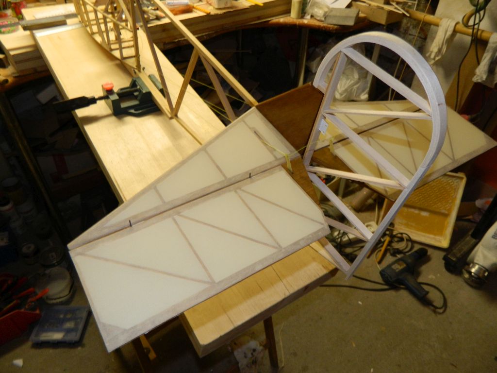 . Trochę popracowałem przy płatach i sterze kierunku. Następny etap: napęd SK. Zdjęcia chyba objaśniają wszystko