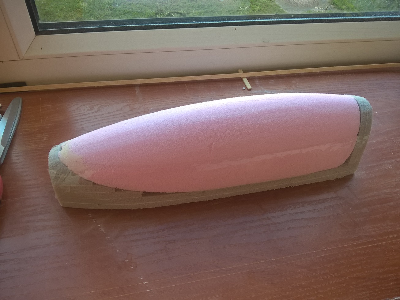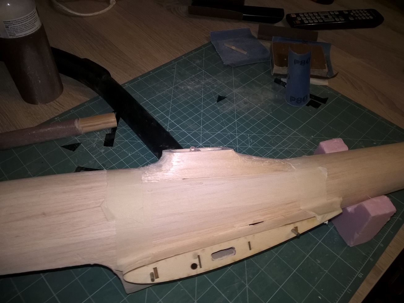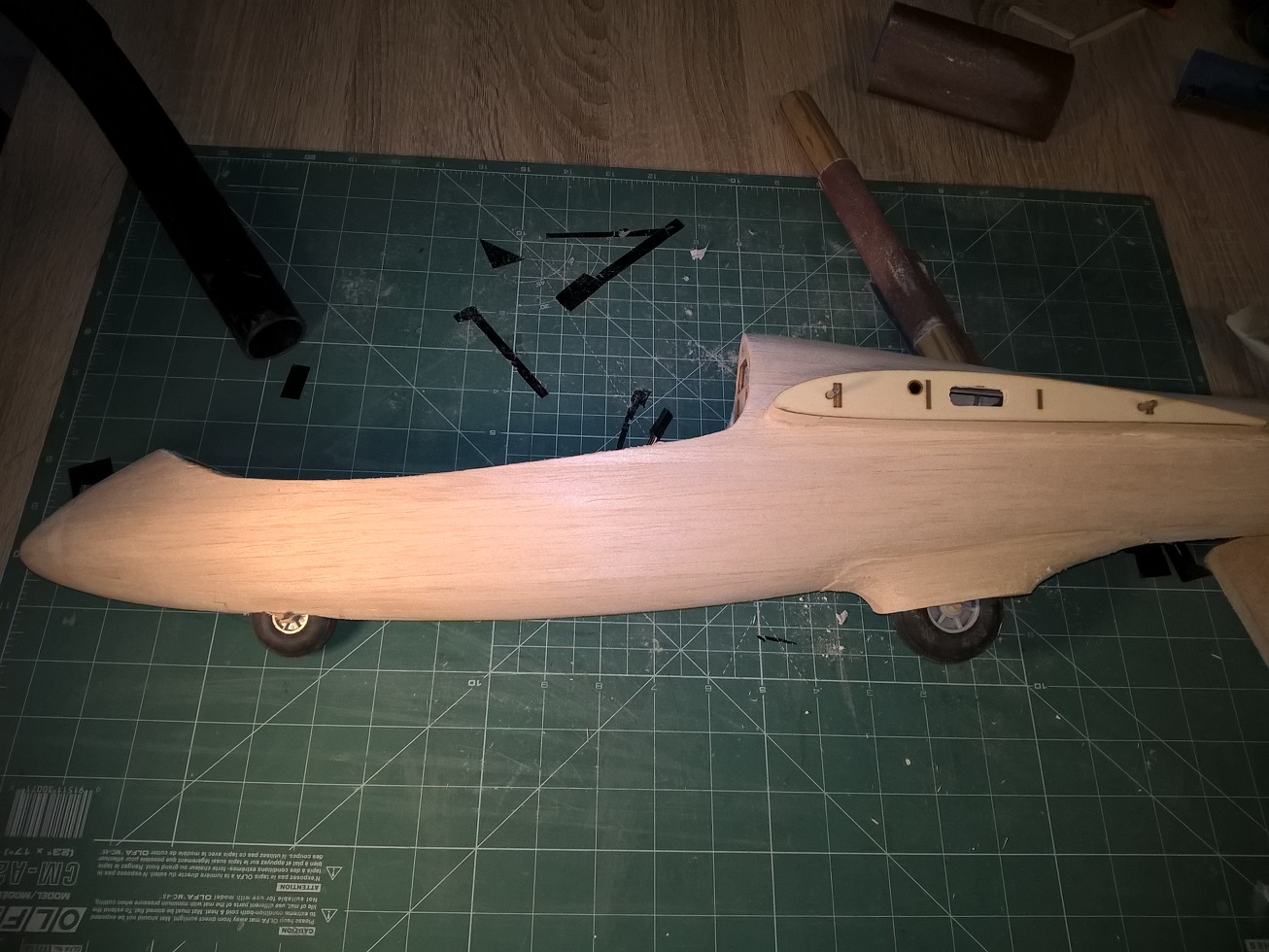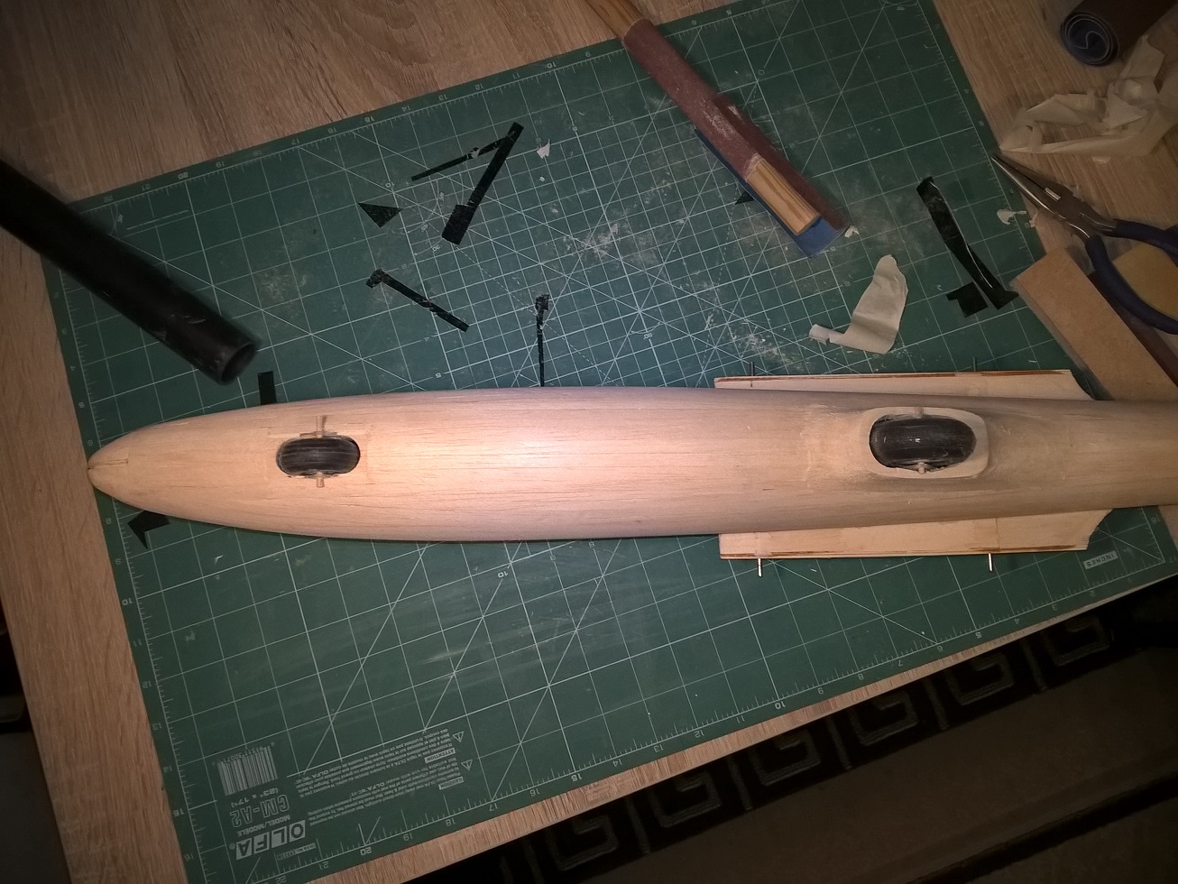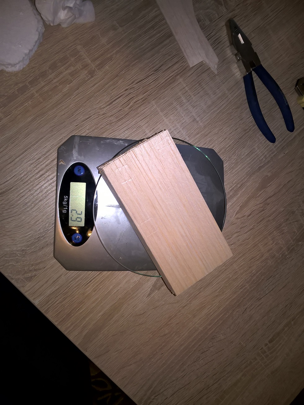 Zaczęło się od bloku z balsy 3x8mm, waga: 29 gram.