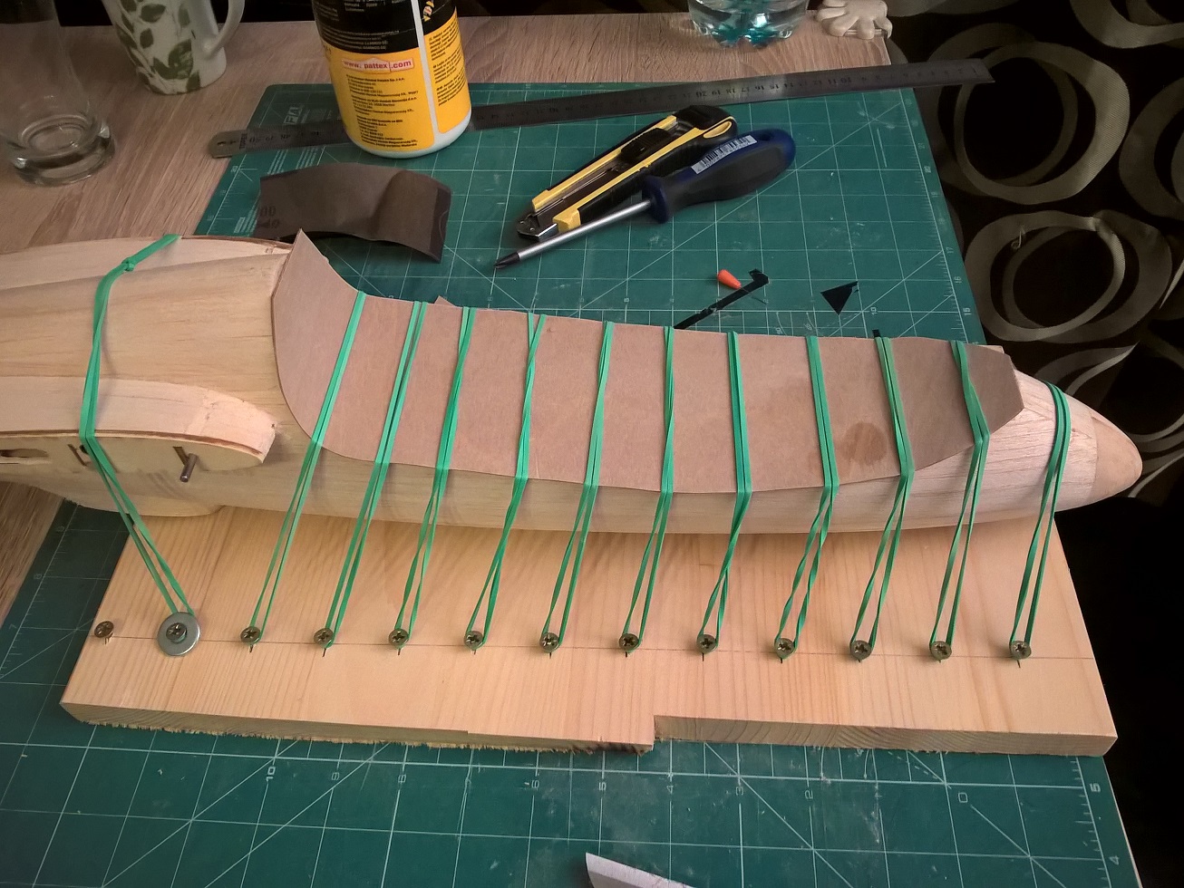 Próbuję zrobić ramkę kabiny, jako baza sklejka 0.8, lamelowana z dwóch kawałków.