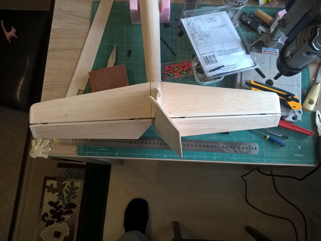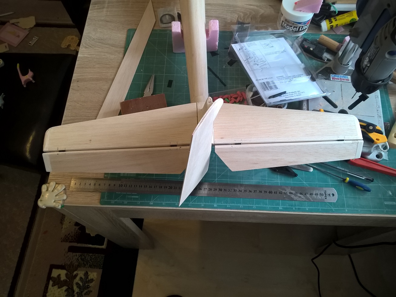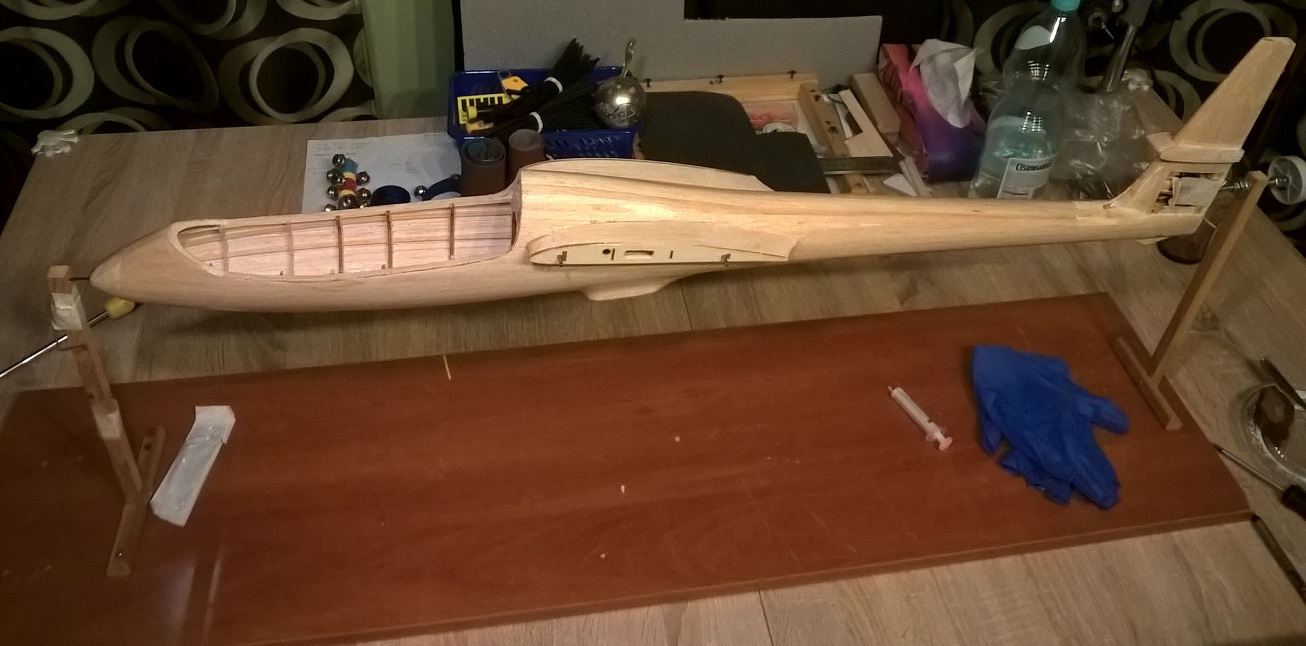 Niedawno spasowałem do końca całe usterzenie poziome/pionowe. Przeszlifowałem ponownie kadłub i przygotowałem do laminowania.