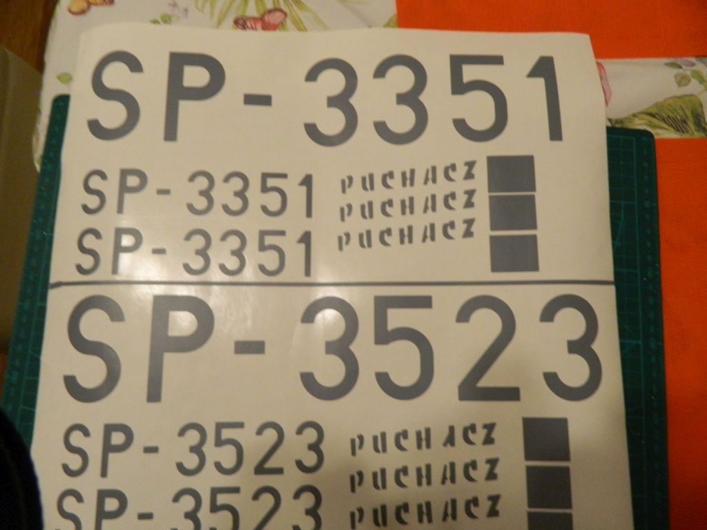 Oczywiście również komplet napisów i emblematów, po 3 sztuki w razie czego ;) , sówki to sam sobie wyciągaj :lol: . Jednocześnie zrobiłem znaki do swojego Puchacza /SP-3523/, może w lato tego roku rozpocznę budowę.