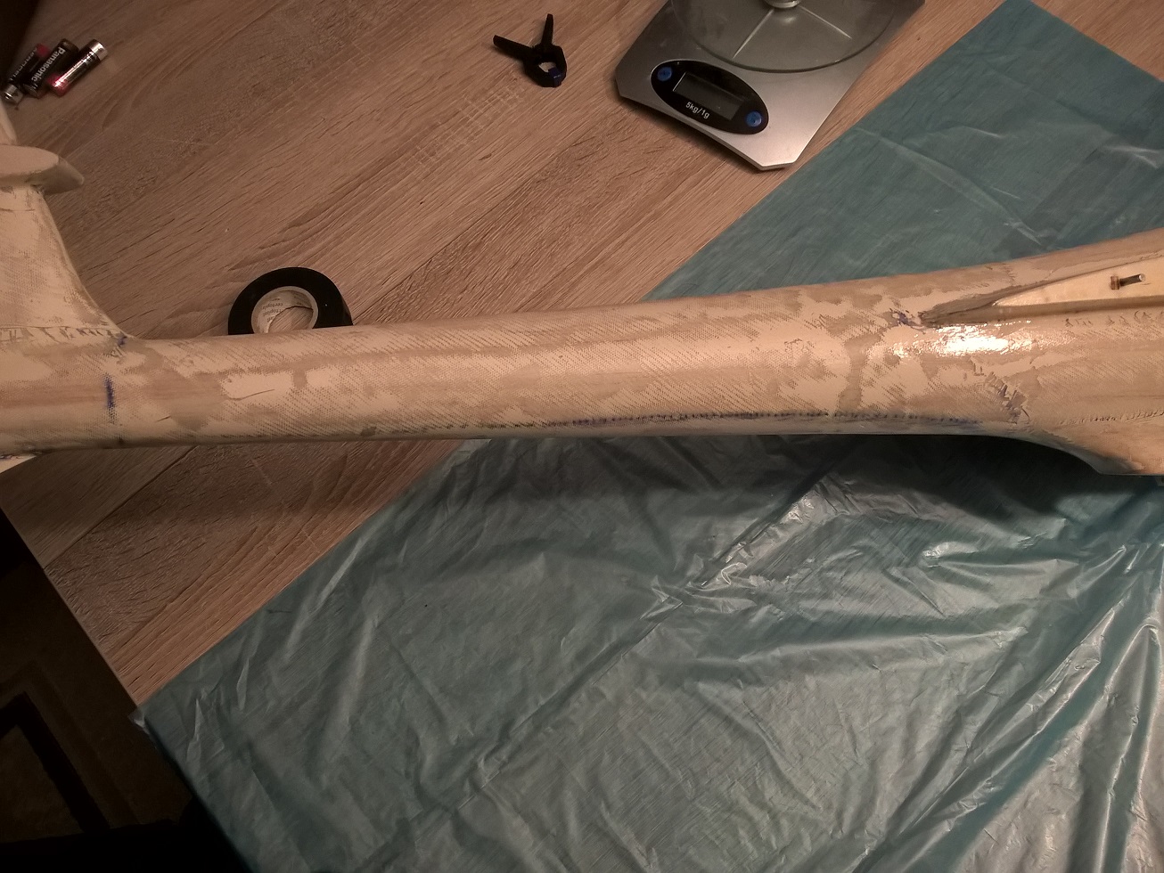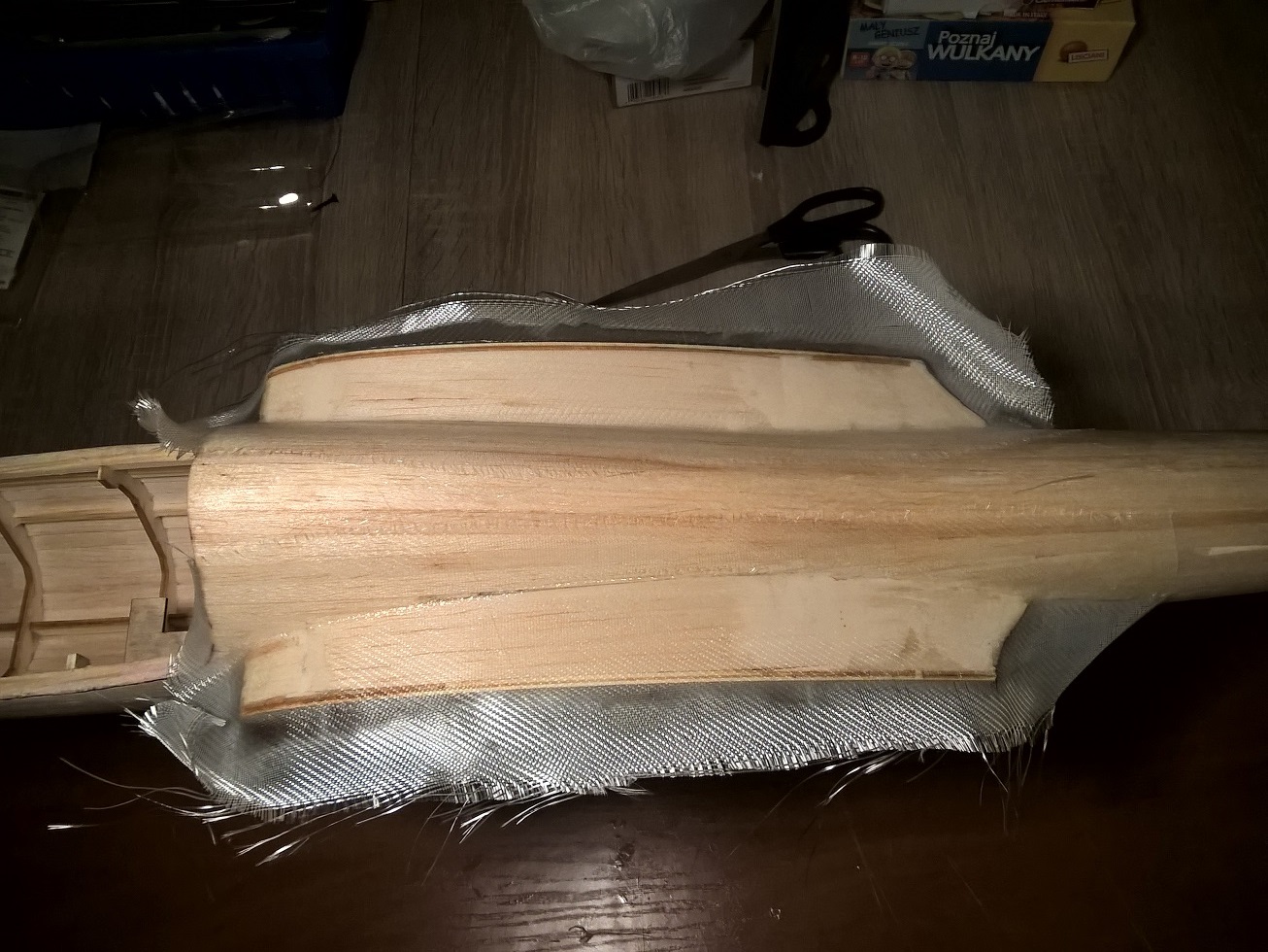 Przed chwilą zagruntowałem żywicą, może jutro pojawią się już jakieś kawałki tkaniny... na gruntowanie poszło 12 ml gotowej żywicy.