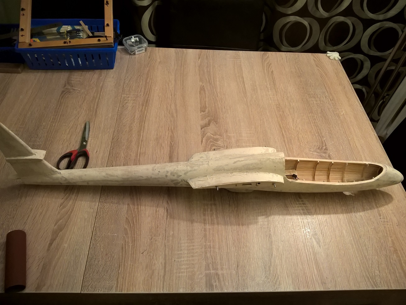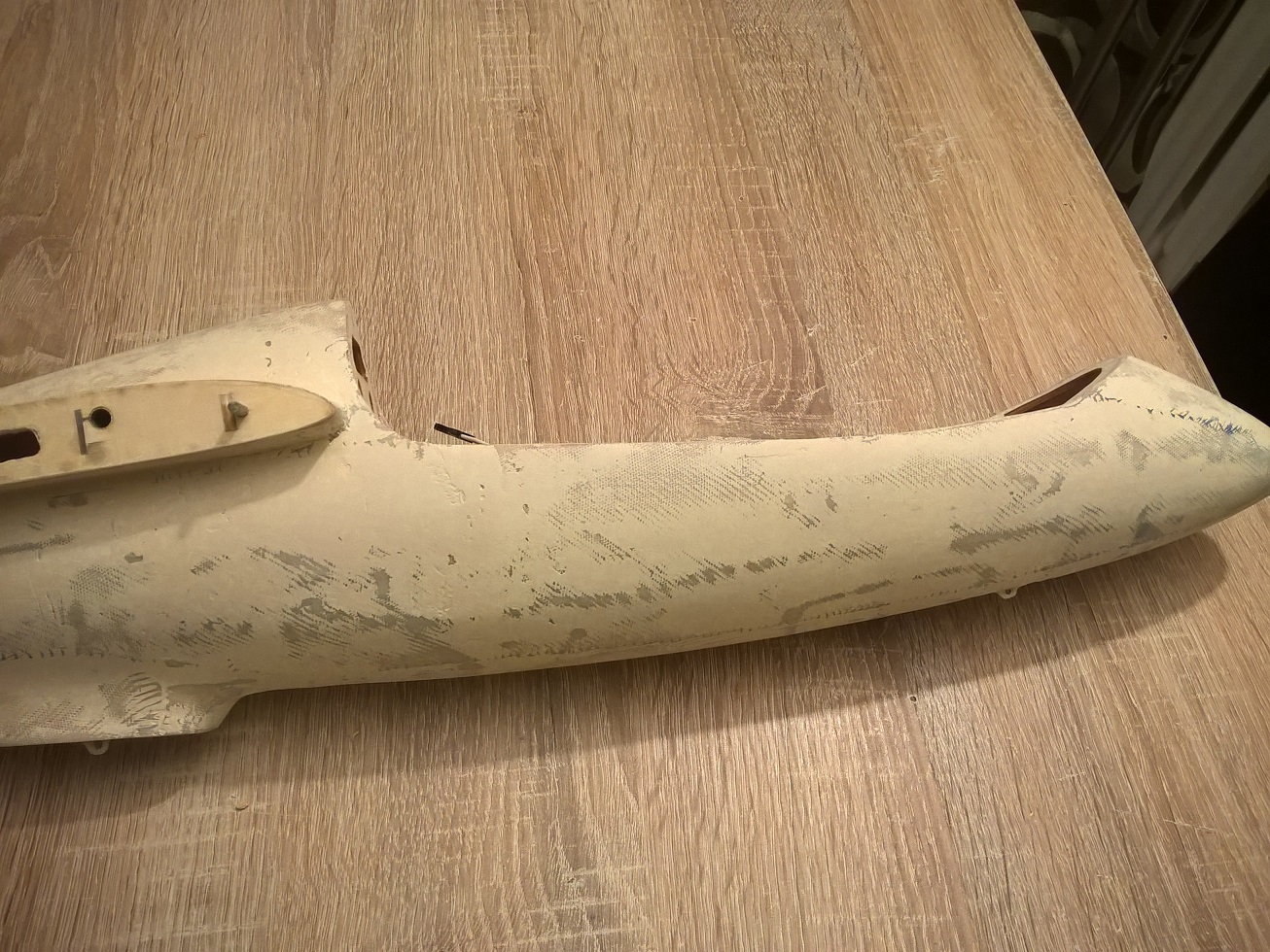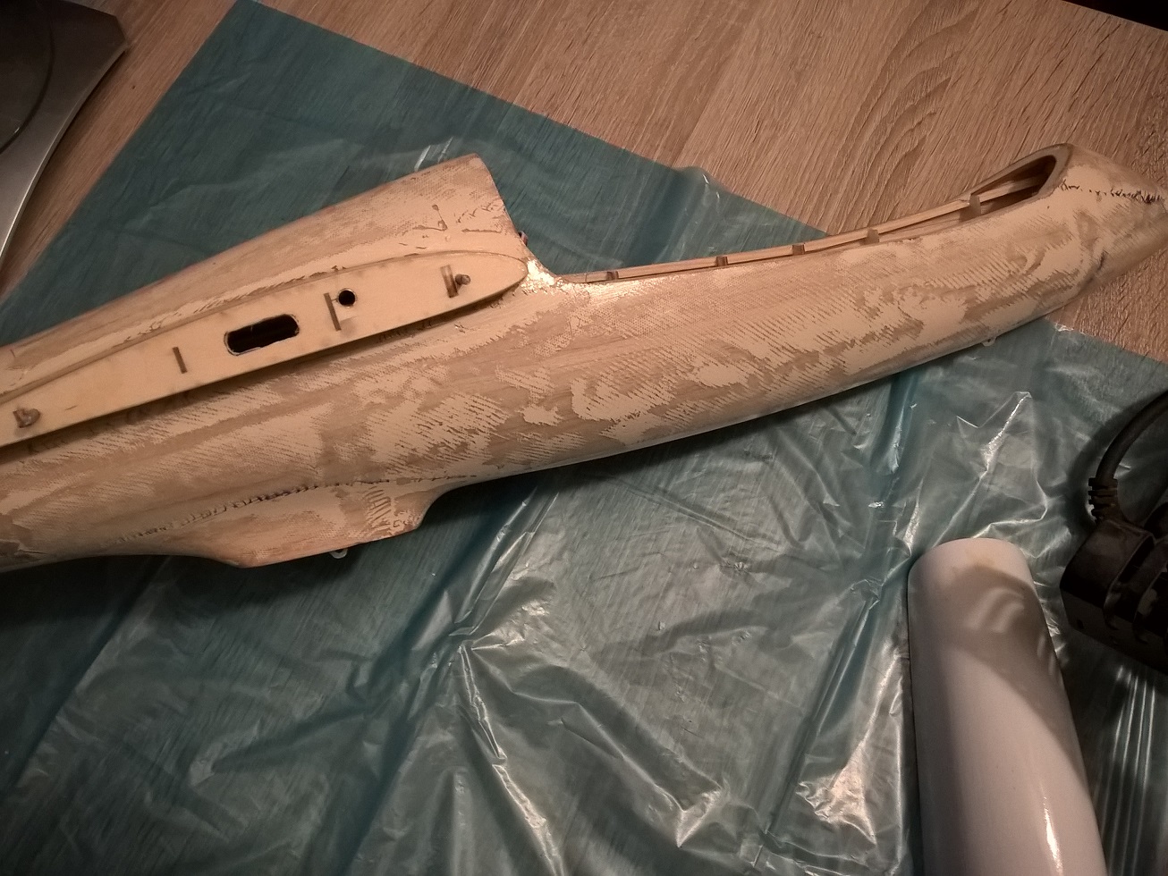 Kadłub przeszlifowany wstępnie papierem o gradacji 100. Teraz jestem na etapie spokojnego dopracowywania gradacją 180.