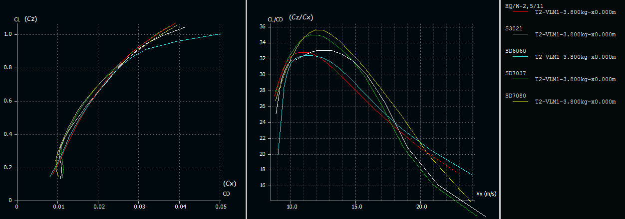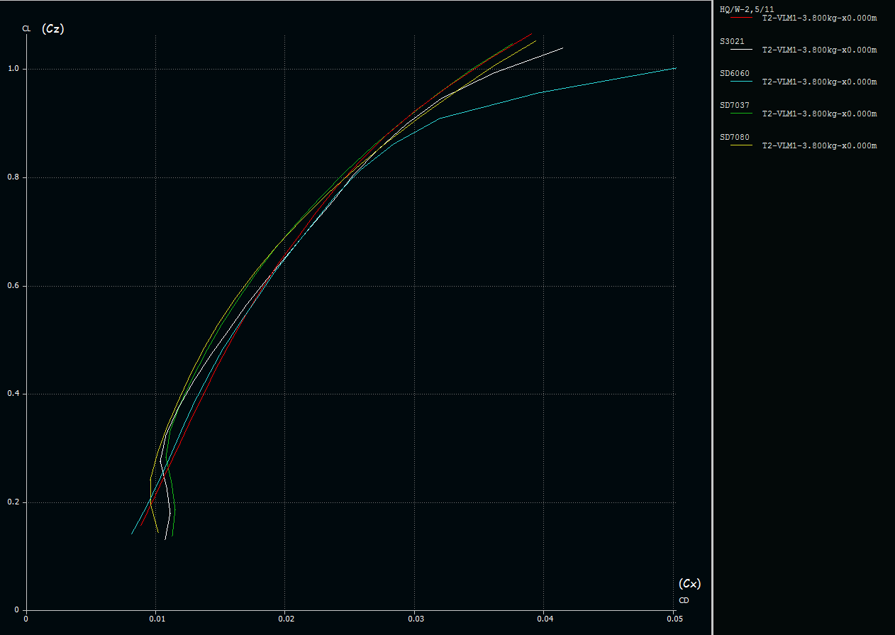 Następnie przeszedłem do wyboru profilu. No i tutaj nie wiem do końca. Skłaniam się do zastosowania profili z rodziny HQ które są chętnie stosowane dla szybowców tej wielkości. Znalazłem informacje na