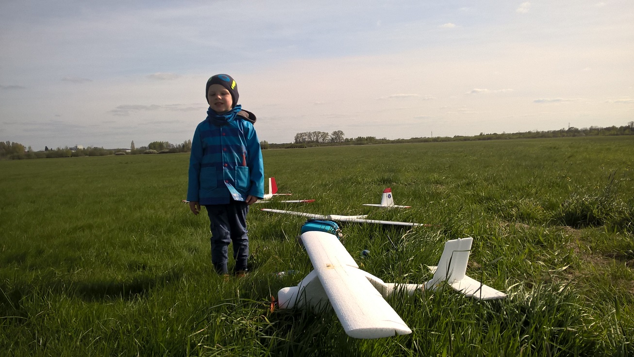 Sprawdzanie modelu przed lotem. Pilot doświadczalny, potwierdza poprawność konstrukcji :lol: