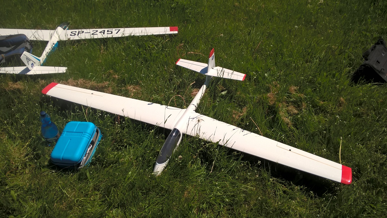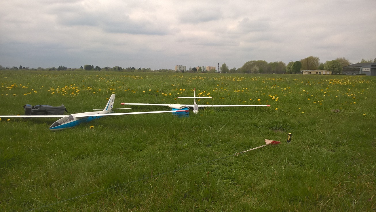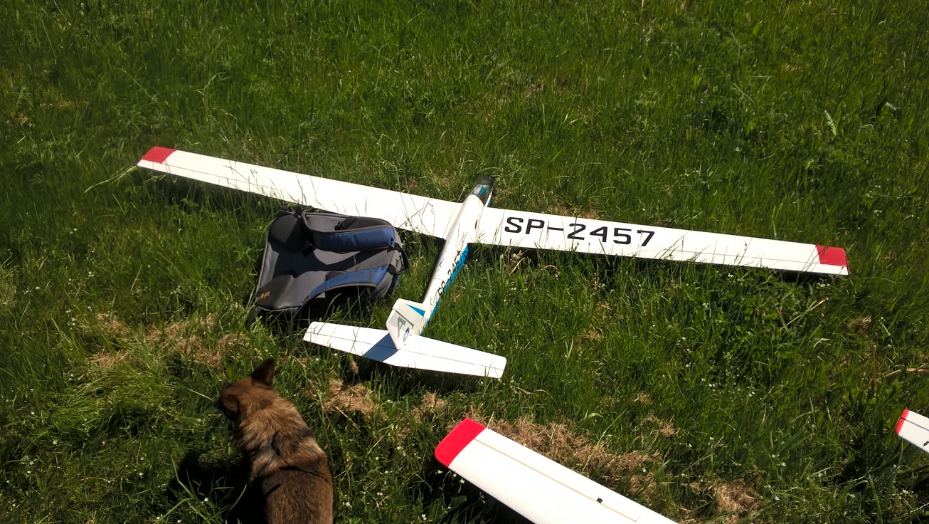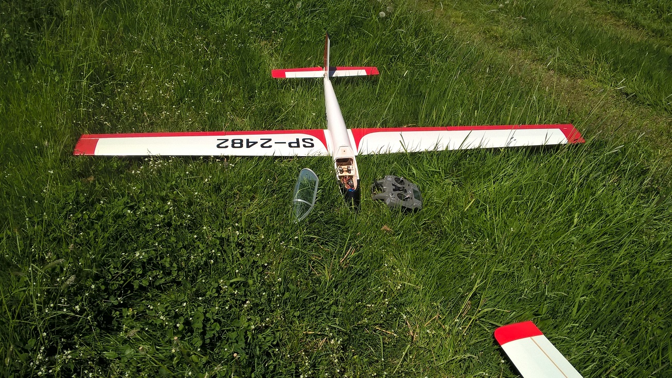 Niestety w jednym lądowaniu zahaczyłem chyba sterem kierunku i zerwałem zakończenie bowdena w Puchaczu.