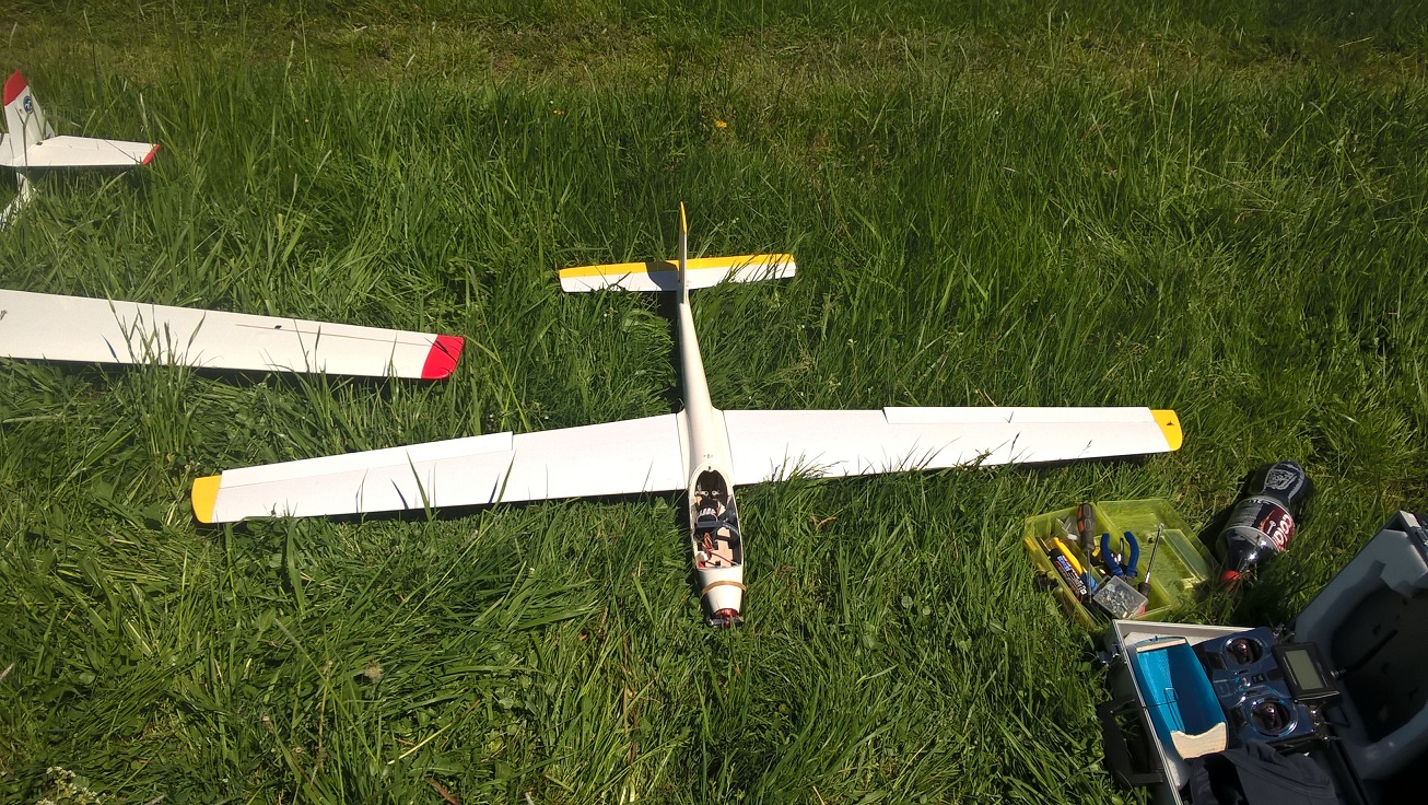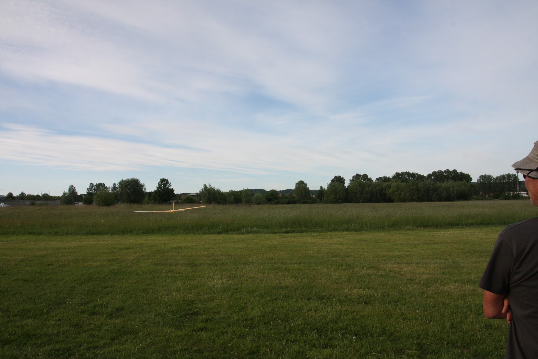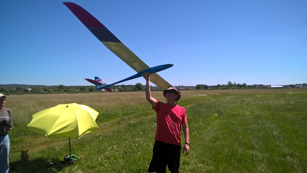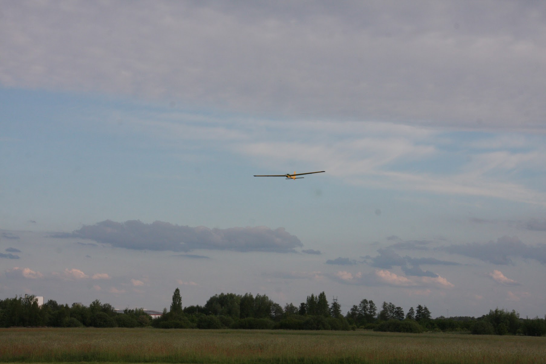 Latanko jak latanko ;) , ale nie ukrywam, że oblot Inspiry był głównym punktem programu. Po pierwsze, że to pierwszy model szybowca naszego kolegi wykonany od podstaw, dotychczas latał dużymi spalinami. Po drugie, pierwszy raz latałem tak dużym modelem. Z tego co wiem oryginalne plany Inspiry pomniejszył do 75%, napęd....szczegółów nie znam. No cóż, model lata świetnie, powoli, idealnie widać czy jest w kominie, czy nie. Moje szybowce to, przyrównując do żeglarstwa, Optymisty, albo wanny z masztem :lol: , a Inspira to "Dar Pomorza"....po prostu płynie. Ta Inspira inspiruje, mnie w szczególności :D .