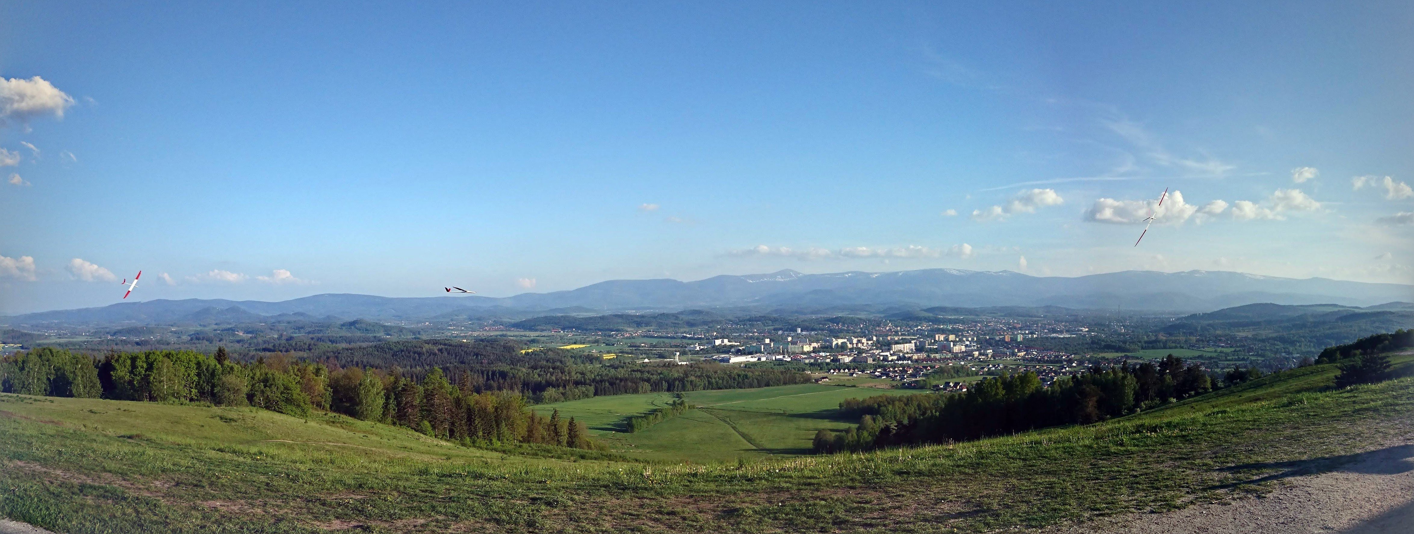 Często całą "bandą" zaglądamy do Jeżowa. Przy wietrze z kierunku północnego, północno-zachodniego lub zachodniego latanie szybowcem jest oględnie rzecz ujmując, takiej sobie. Da się, ale raczej daleko od siebie. Dawniej przy wietrze zachodnim schodziliśmy na stok od strony samego Jeżowa, ale teraz jest tam sporo budynków i działek budowlanych. Fajne warunki są przy wietrze wschodnim lub południowym. Zbocze południowe jest krótkie i strome, wschodnie długie i raczej łagodne. Oba nieco porosły drzewami. Latanie w Jeżowie przy tych "dobrych" kierunkach wymaga dobrze opanowanej techniki lądowania. Problemem Jeżowa jest to, że de facto nie jest to już takie lotnisko, jak było przed laty. Owszem, jest i hangar, i tablice, itp., ale okoliczni mieszkańcy traktują lądowisko jak tereny zielone. To znaczy, spacerują, leżą na kocach, grilują, przejeżdżają rowerami, na motocyklach, zdarzają się konie i samochody. Kiedyś latając z wyciągarką nie mogłem żadną miarą wytłumaczyć dziewczęciu na koniu, że wjeżdżanie na pole wzlotów bez uprzedzenia jest niebezpieczne przede wszystkim dla niej, ponieważ start z wyciągarki może wystraszyć jej dzielnego rumaka, który nieprzyzwyczajony do takich akcji poniesie ją lub zrzuci. Inny problem, to osoby rozkładające koce na zboczu w czasie, gdy latamy modelami. Do nich też nie dociera, że jest to bardzo kosztowna "zabawka", a przy tym waży ze 2 kg i rozpędzona do jakichś 100 km/godz. stanowi zagrożenie dla życia i zdrowia. Nie chcę, abyście czytając ten tekst odnieśli wrażenie, że bez przerwy trzeba się z kimś kłócić, że do Jeżowa nie warto się wybrać. Nie, to nie tak. Po prostu - trzeba unikać weekendów i planować swoje wyjazdy raczej w tygodniu. Do pola wzlotów można bez problemu dojechać samochodem - na sam szczyt aż do hangaru, hotelu Szybownik i knajpy Hexa prowadzi droga asfaltowa, która jest wąska, ale nie jest dziurawa. Przy dobrym wietrze zabawa jest gwarantowana, a i widok z góry szybowcowej jest przedni. Noszenie można znaleźć przy wietrze z każdego kierunku, ale raczej nie warto wybierać się tylko z jednym szybowcem. Moim zdaniem, przy wietrze wiejącym z kierunku północ-zachód lepsze są większe, latające wyżej i bardziej odporne na rotory modele. Przy kierunku wschód-południe mniejsze i szybsze. Jeśli nie ktoś nie czuje się w powietrzu zbyt pewnie lub chce "przetestować" warunki, to powinien zabrać motoszybowiec, bo w razie potrzeby będzie mógł ratować się napędem. Znam Jeżów od dziecka. Urodziłem się i dorastałem nieopodal, niejako w cieniu góry szybowcowej. Marzyłem o lataniu patrząc na szybowce lądujące na Zabobrzu. Ale to już nie to samo miejsce, co przed latami. Chociaż może staraniem lokalnych zapaleńców uda się przywrócić dawną funkcjonalność.