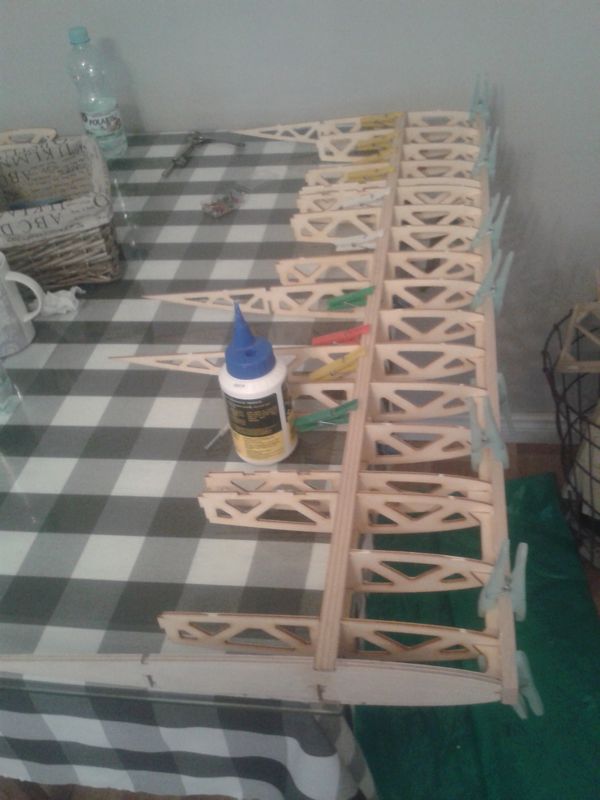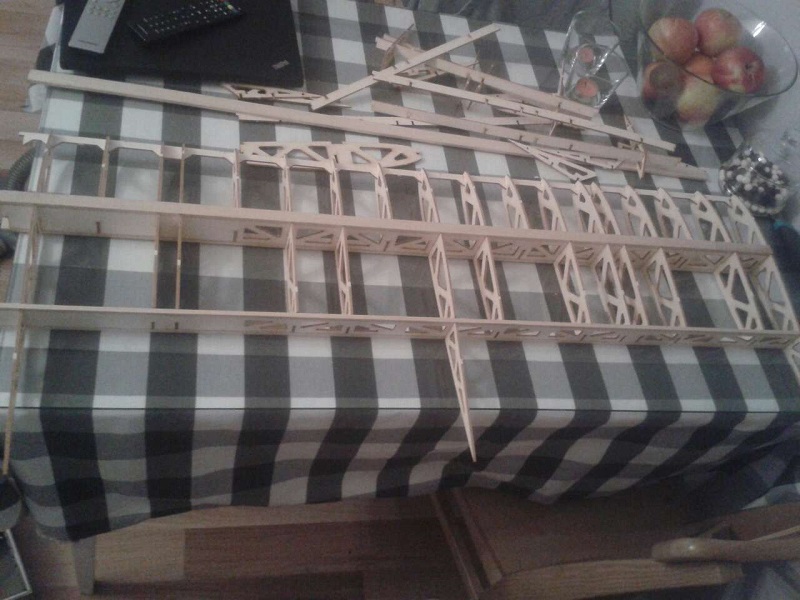 Powoli prę do przodu. Wycinanka laserowa sklejona, no pozostały do sklejenia klapy i lotki ale postanowiłem zrobić najgrubsze.
