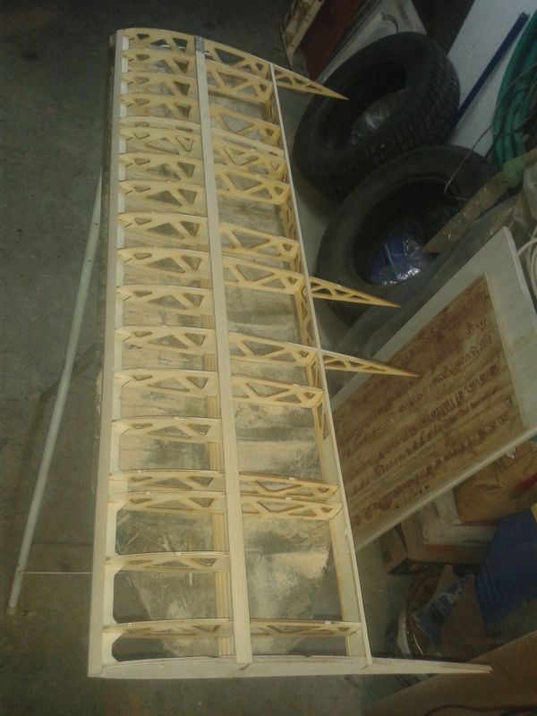 Dziś w zaciszu garażu oszlifowałem wstępnie natarcie w obu połowach skrzydła i przygotowałem całość do doklejenia poszycia w części kesonowej.
