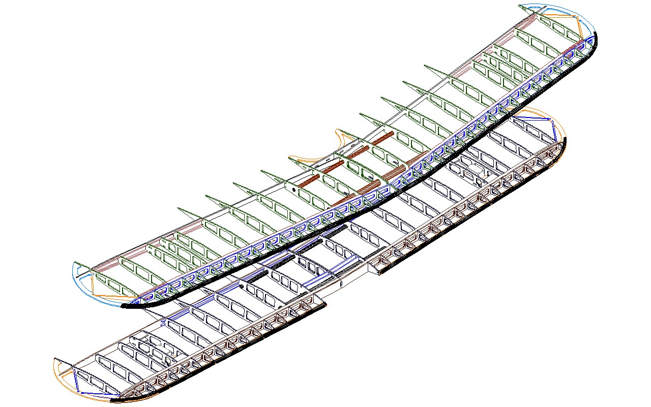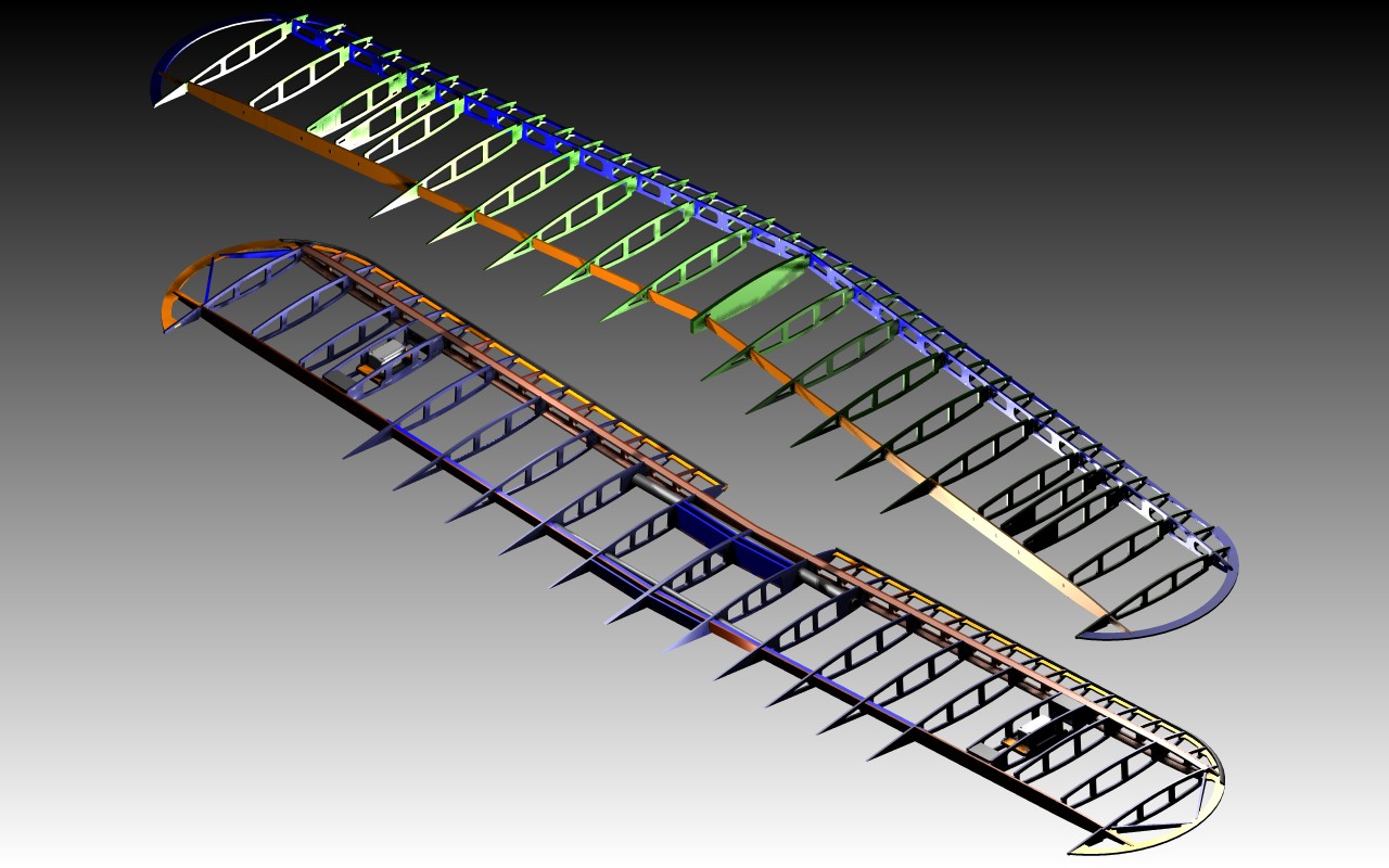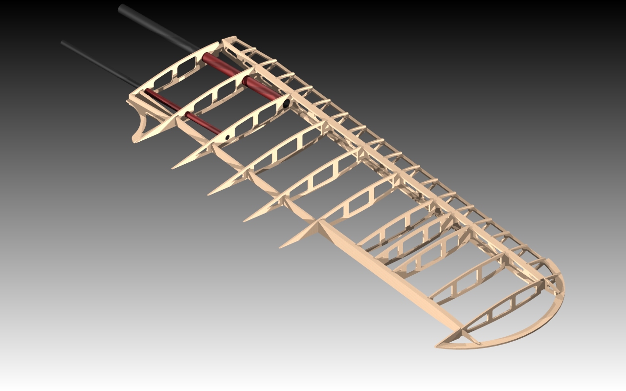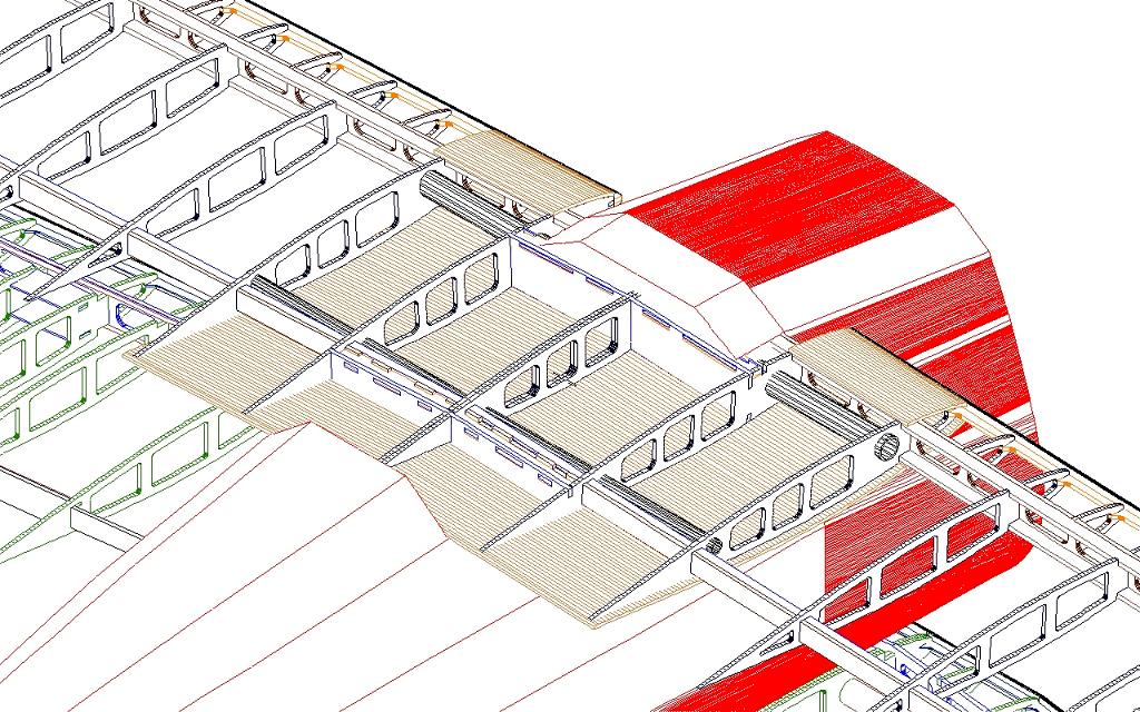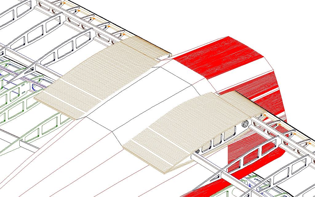 Przyszedł moment na ustawienie płatów względem kadłuba i względem siebie. Dorobiłem wirtualne pokrycie i ustaliłem ostatecznie położenie skrzydeł.