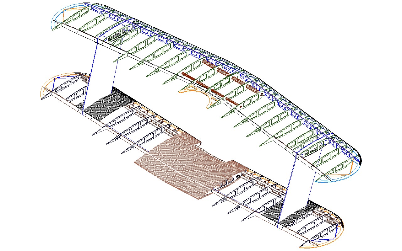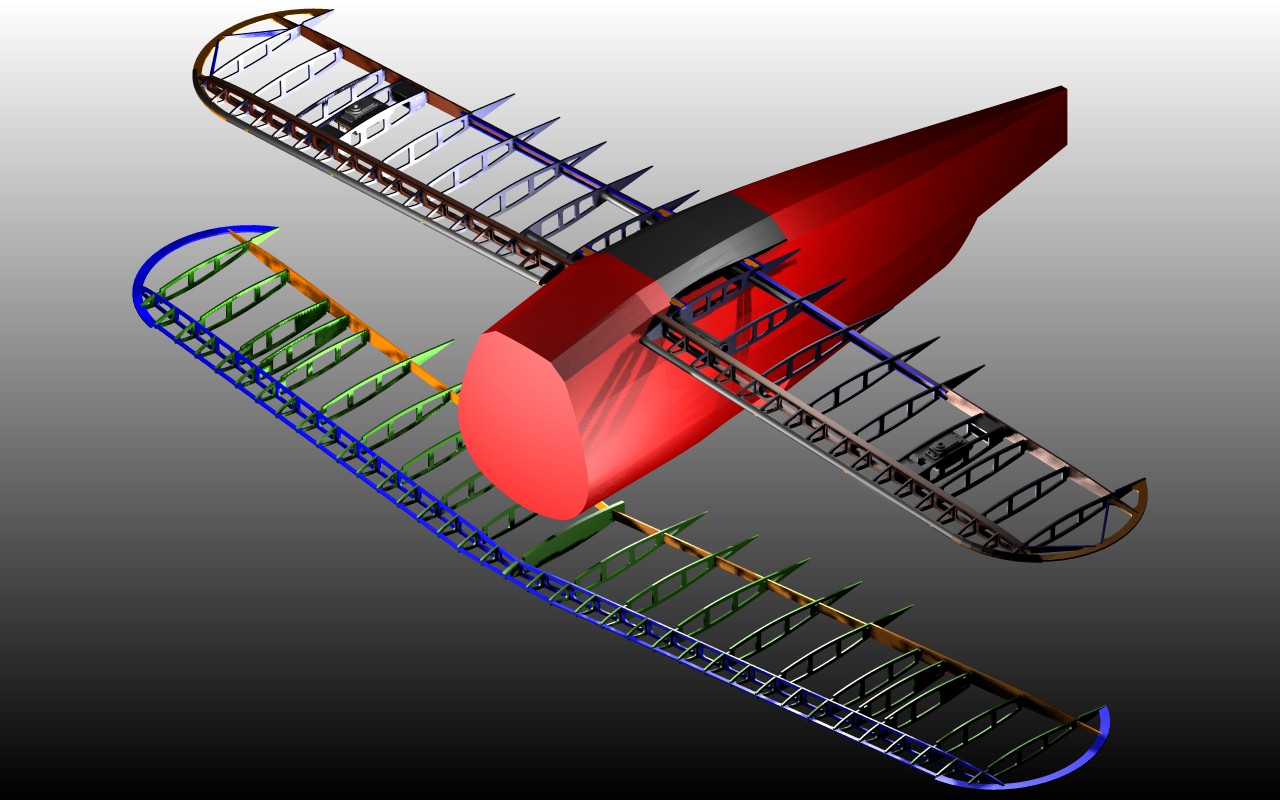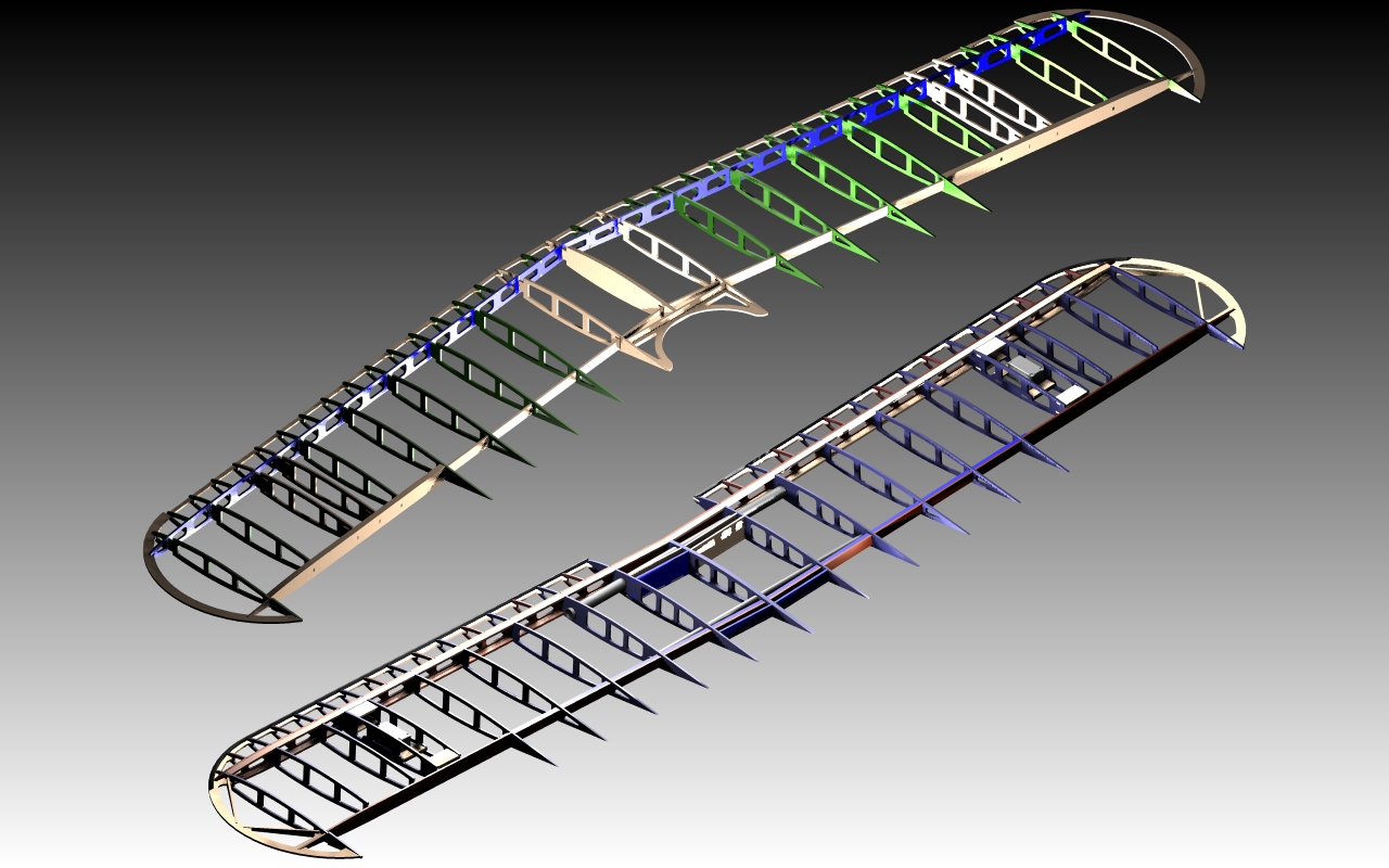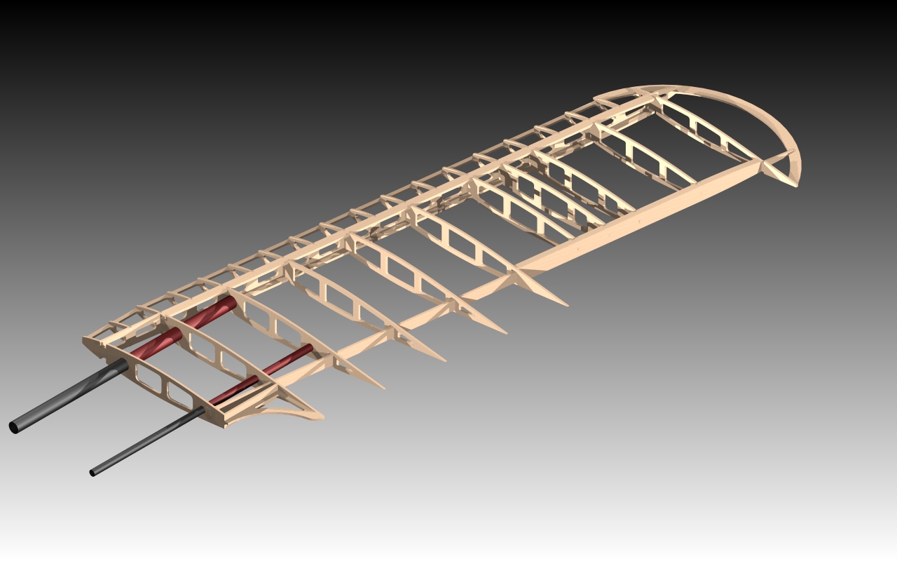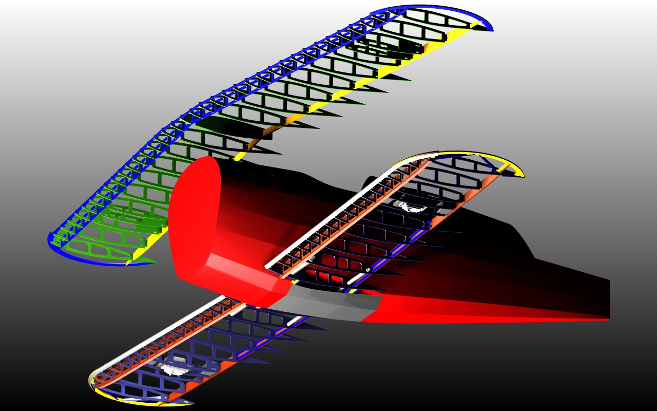 Przyszedł moment na ustawienie płatów względem kadłuba i względem siebie. Dorobiłem wirtualne pokrycie i ustaliłem ostatecznie położenie skrzydeł.