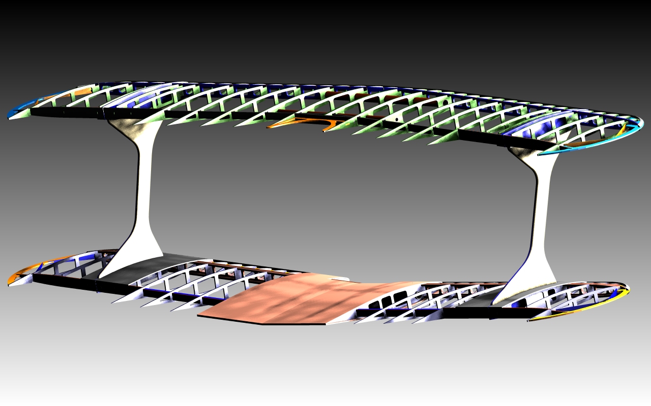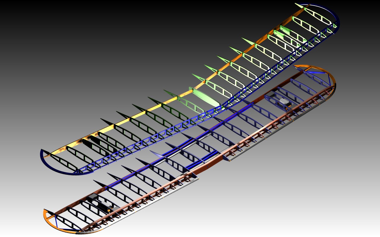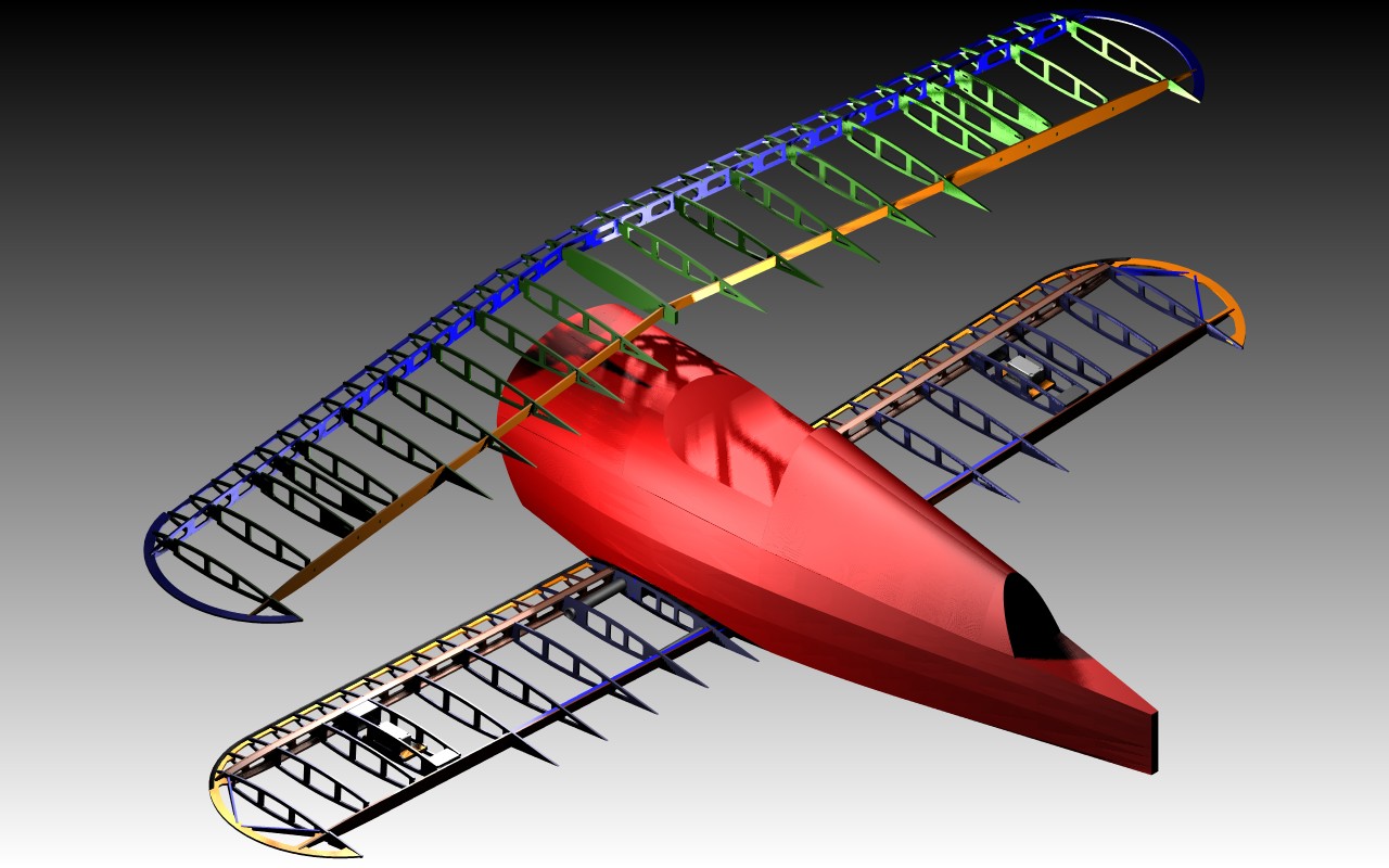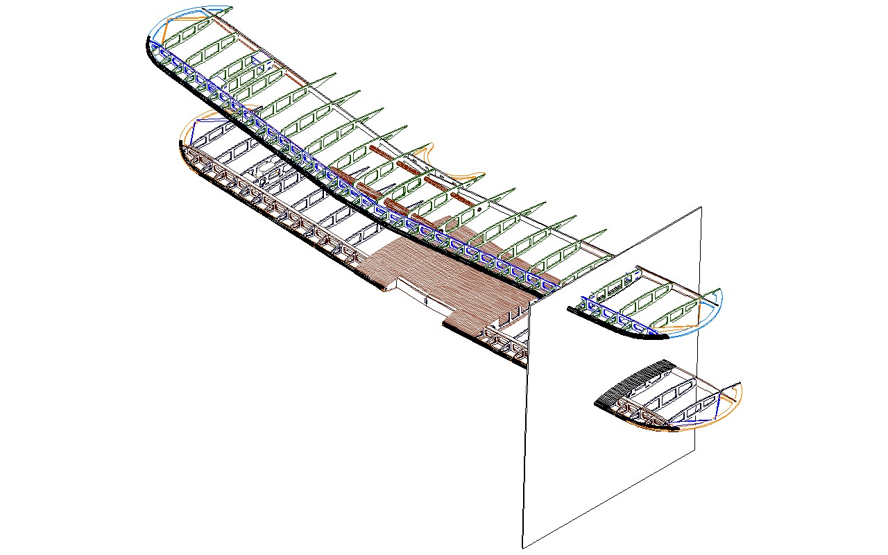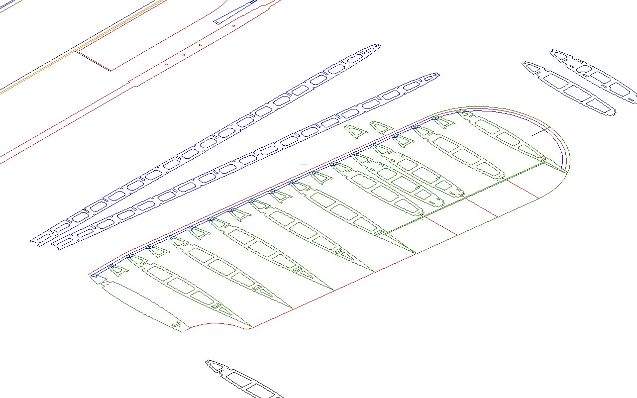 Przyszedł moment na ustawienie płatów względem kadłuba i względem siebie. Dorobiłem wirtualne pokrycie i ustaliłem ostatecznie położenie skrzydeł.