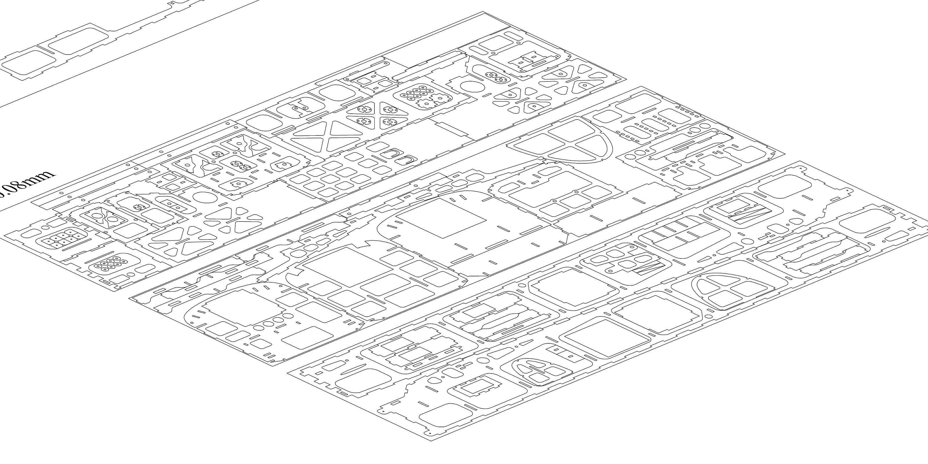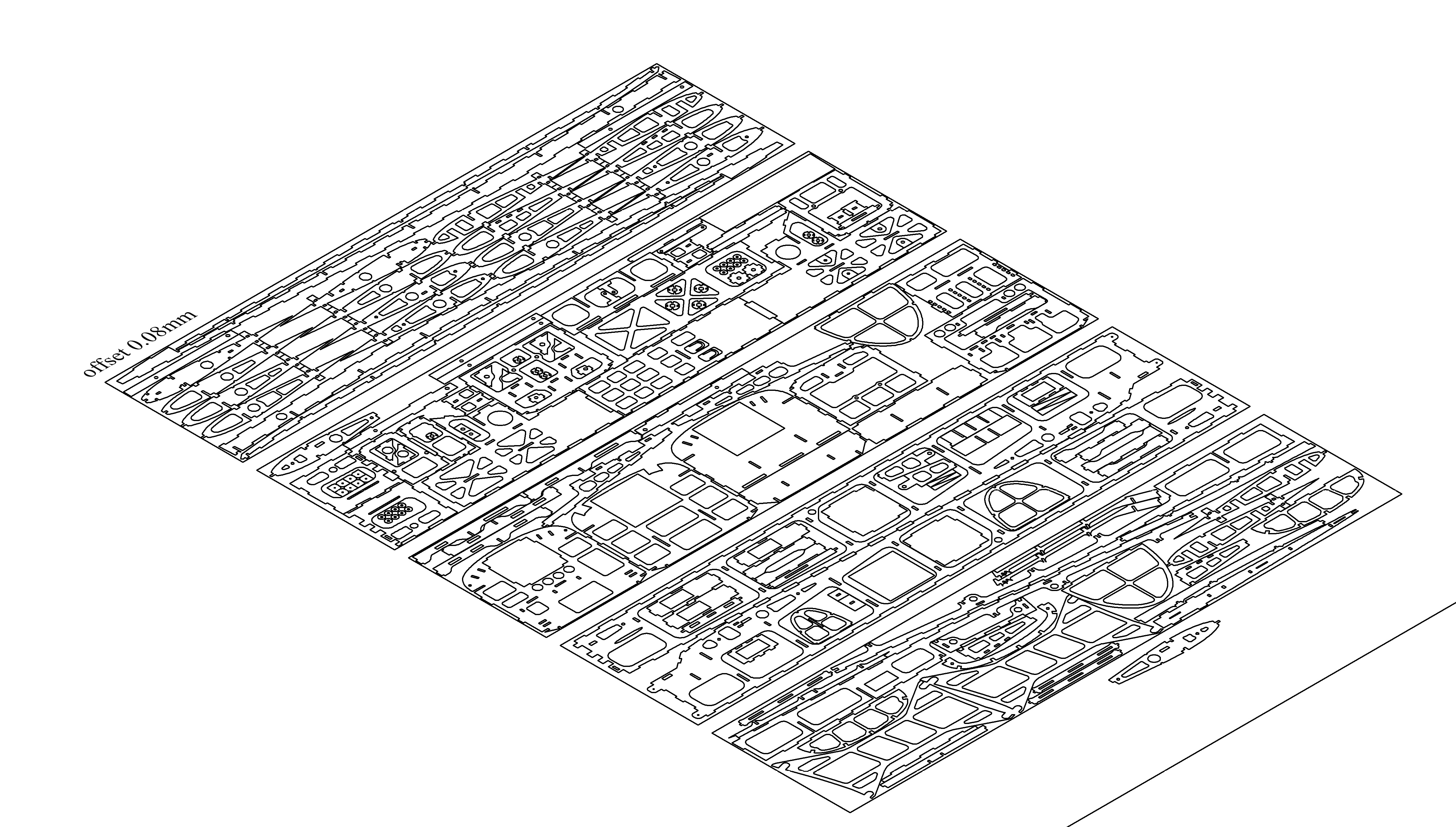 Zacząłem robić offsety i formatki. Sklejkowych będzie 5 szt 1000x250mm W sumie niecałe 2,5 formatek 1000x500. Pewnie wszystko zmieściłbym na dwóch formatkach 1000x500 ale dla wygody podzieliłem to na 250mm szerokości.