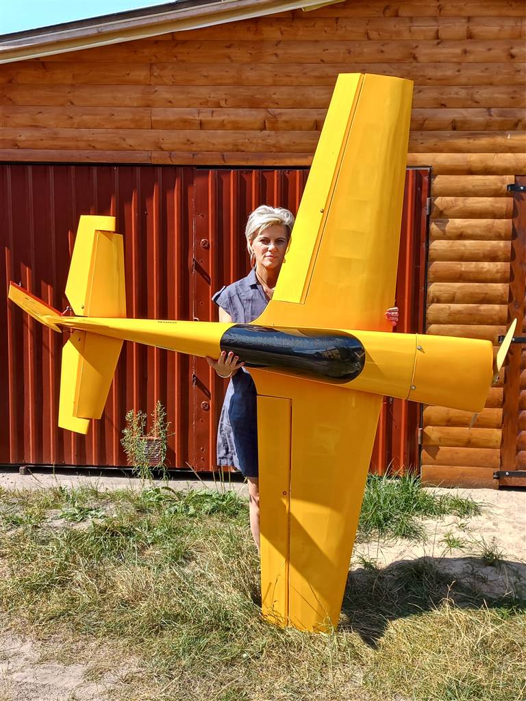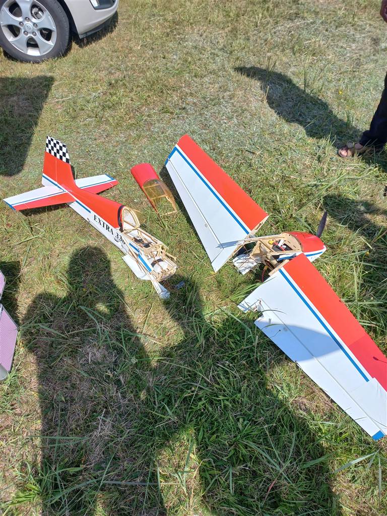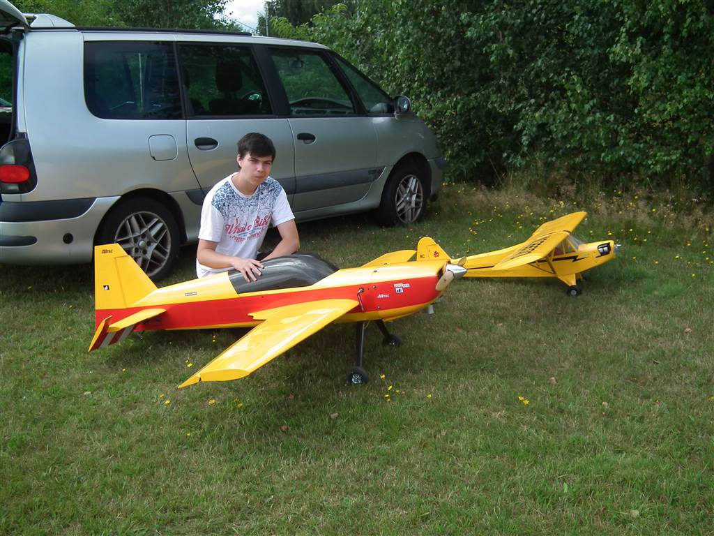 Exstra miała już ponad 10 lat i w sumie się cała rozkleiła od uderzenia ( poszła na żyletki ) ale młody złapał bakcyla akrobacji i coś trzeba było zrobić myślałem nad modelem 1,8m i silnikiem 30 ccm ale totalna posucha w sklepach i trafił się On gotowy do lotu w dobrej cenie tylko po odbiór musieliśmy pojechać w okolice Bydgoszczy