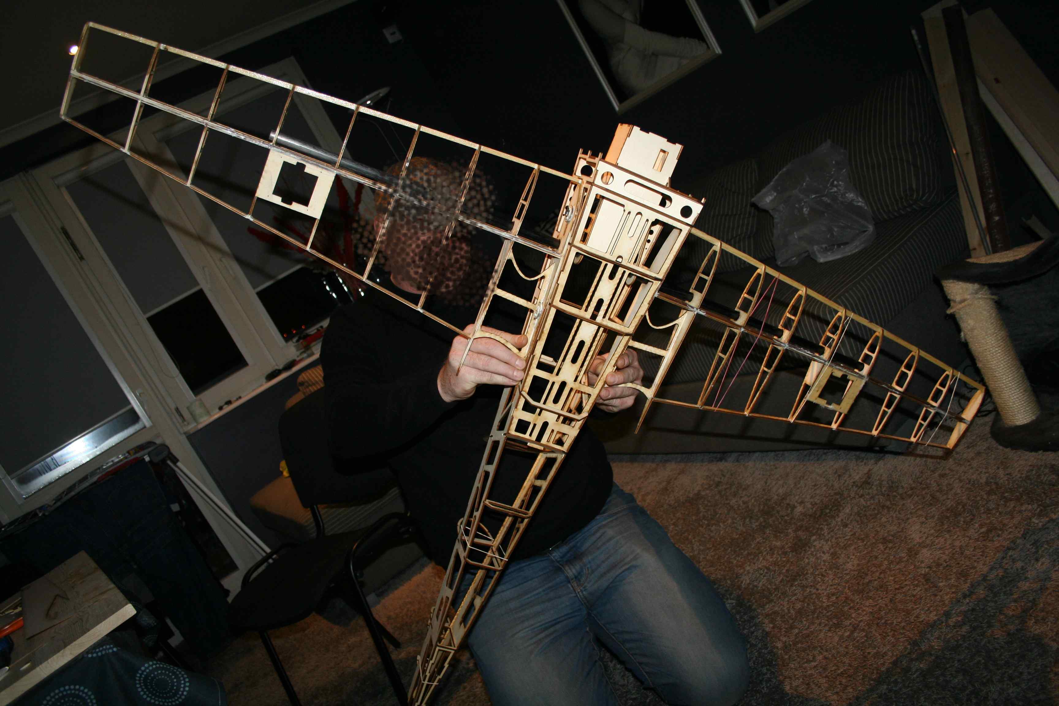 No właśnie z wymiarem miałem problem. Korzystałem z planu, który ściągnąłem z internetu. Teraz nie pamiętam skąd. Rozpiętość skrzydeł wynosi 1500 mm. Problem miałem taki, że na planie były dwie różne długości kadłuba. Wybrałem długość większą tak, że teraz wynosi 1150 mm.
