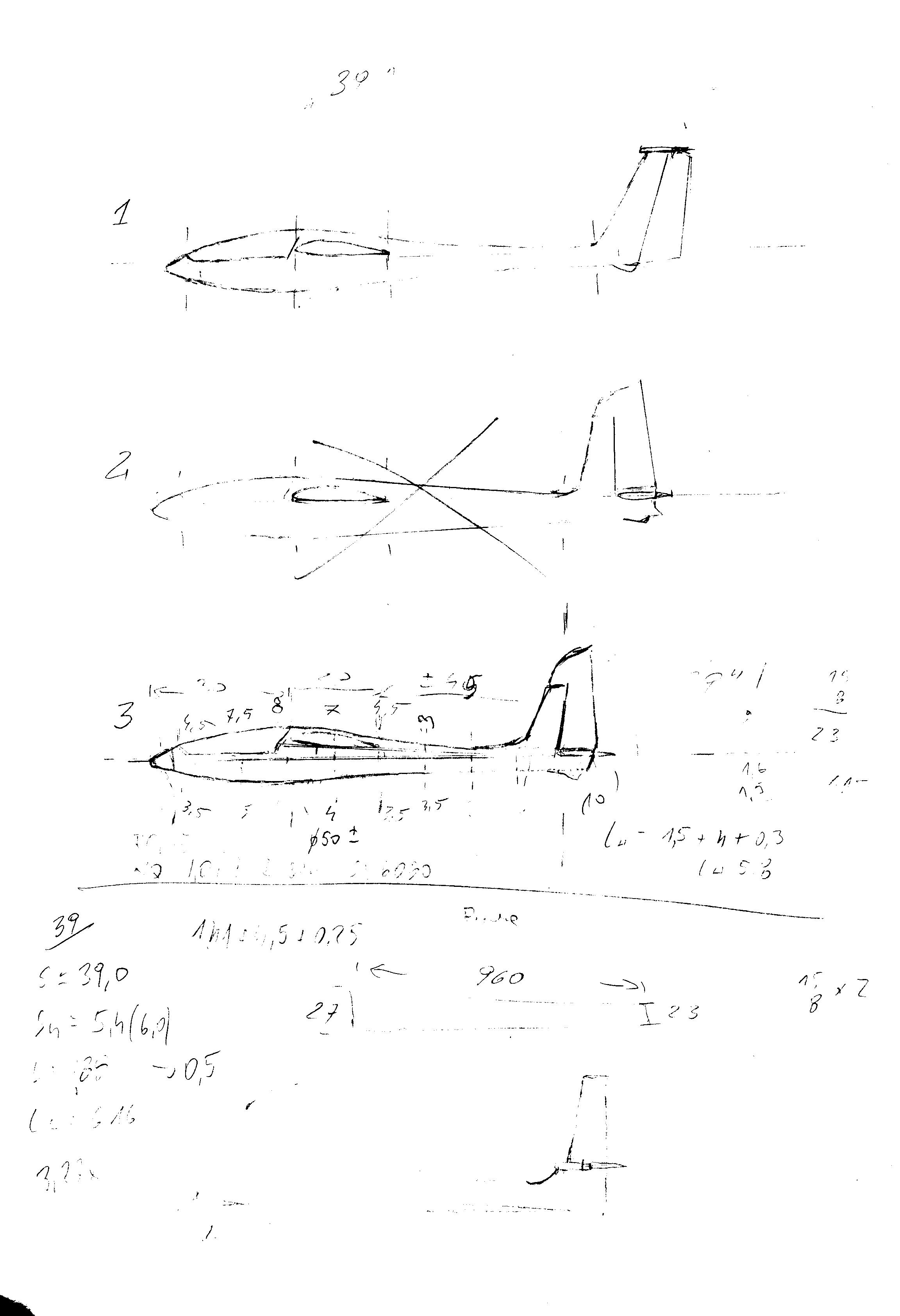 Wersję "A" Adw1 mamy policzoną. W nastepnych postach przechodzimy do drugiej fazy, wykreslania planów, początkowo ogólnych, później, warsztatowych. A jeszcze wersje "B" i "C". O nich napiszemy niebawem. Teraz proponuję podzielić sie robotą. Płaty można rysować, wszystkie wersje, kadłub spróbujemy z Piotrkiem obrysować w Cadzie... jeszcze poziomy do rysowania...Ok jutro spróbujemy przedstawić ogólne szkice wszystkich podzespołów. Chętni zglaszać się do pomocy.