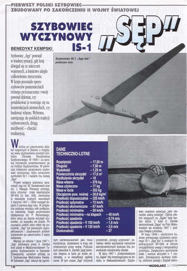 Przeglądając stare roczniki naszego ,,Modelarza " znalazłem taki plan Sępa :)