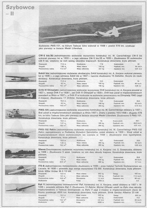 Materiały pochodzą z broszury "Barwa w lotnictwie polskim. Samoloty i szybowce do 1939 roku", zeszyt nr 1, autorstwa A. Glassa i K. Cieślaka, 1985 r.