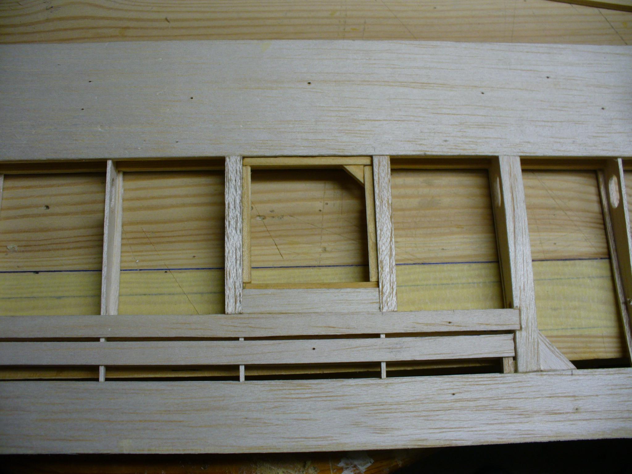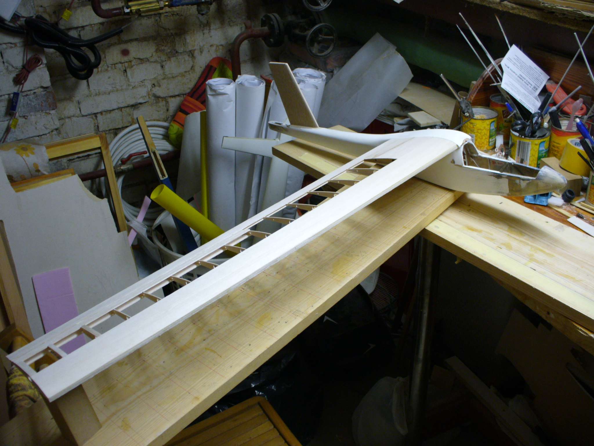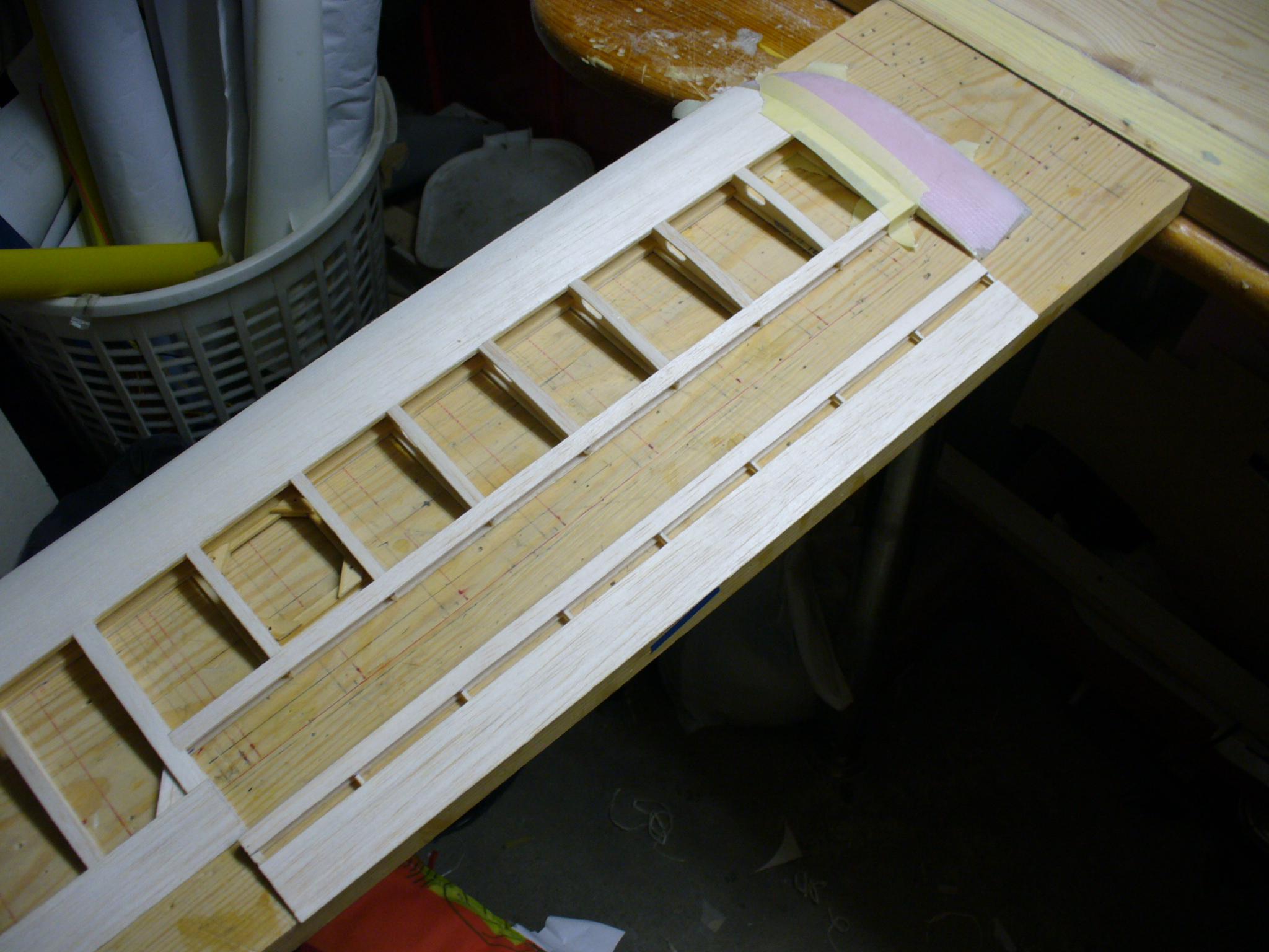 Po odcięciu, musimy wypełnić przestrzenie między pasami dźwigarka lotki i dźwigarka przylotkowego. Tutaj stosuję resztki balsy 4/5 mm. Klej soudal poliuretanowy.