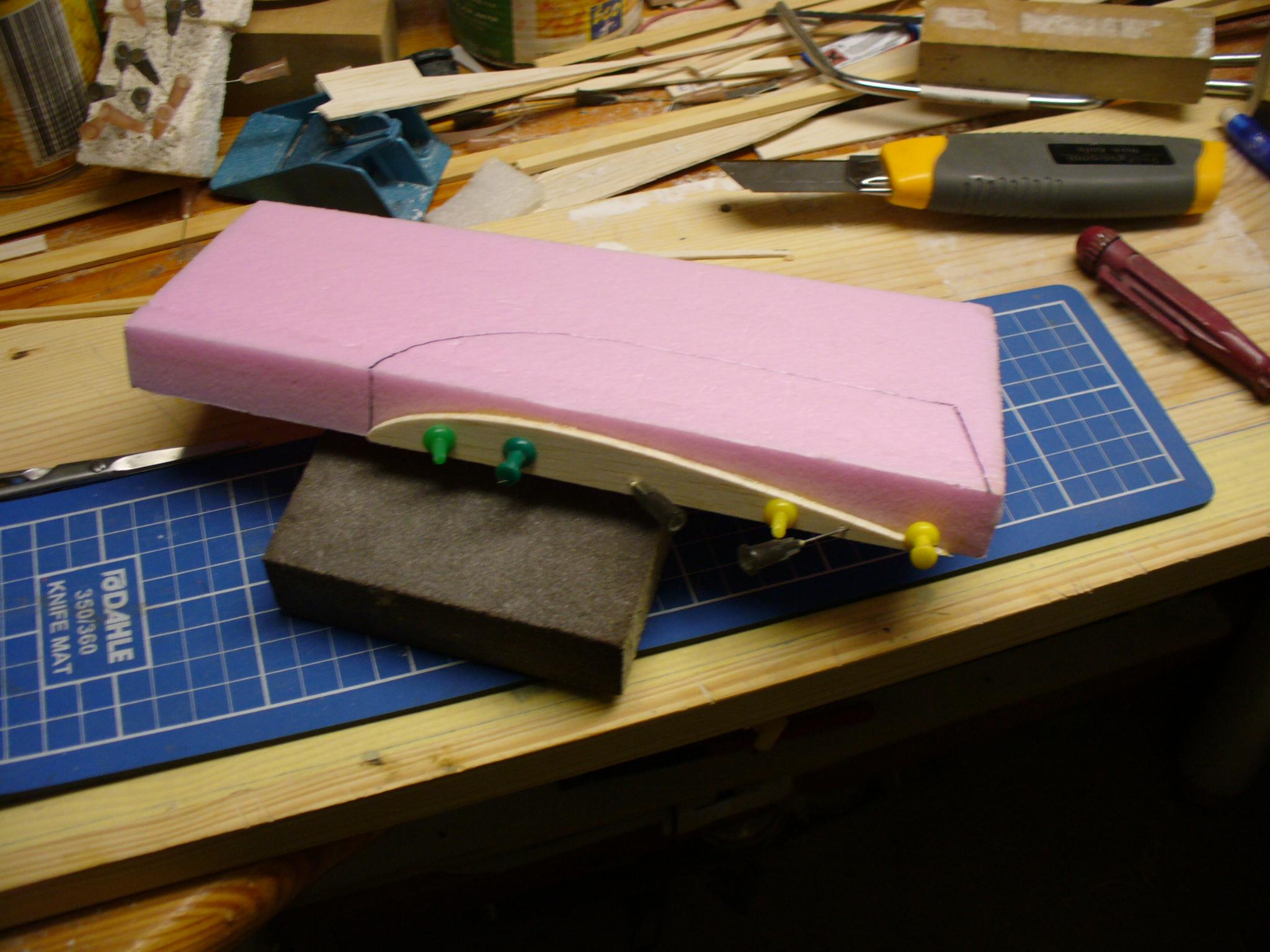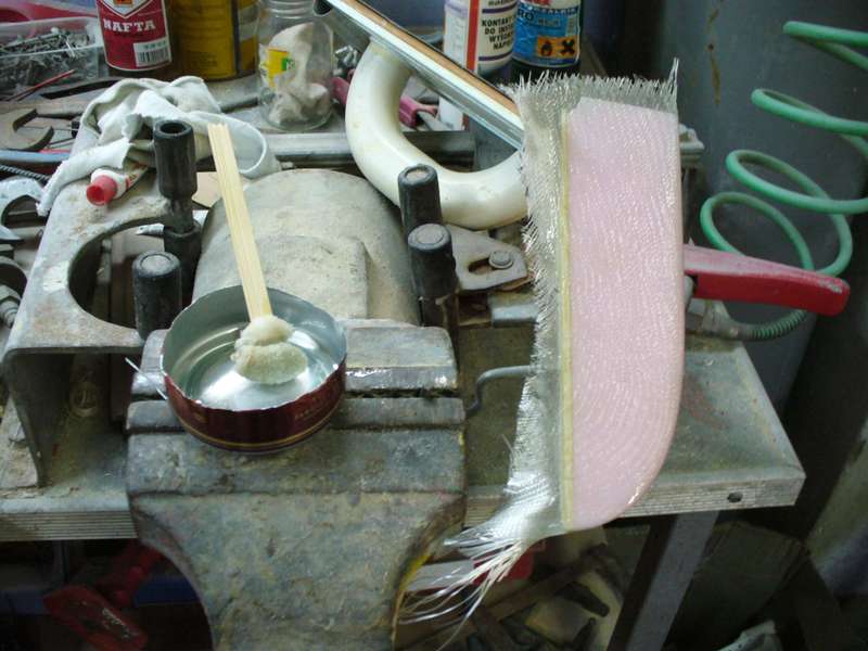 Końcówka płata po wstępnym obrobieniu, została przyklejona do płata. Klej soudal poliuretanowy.