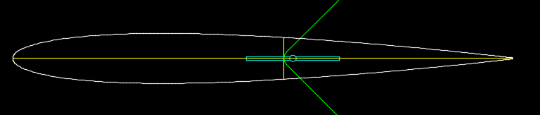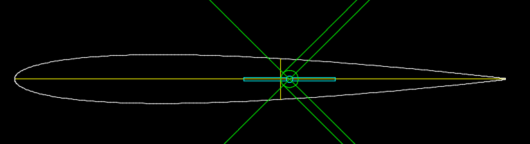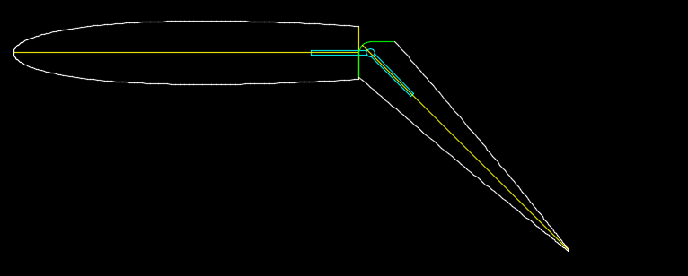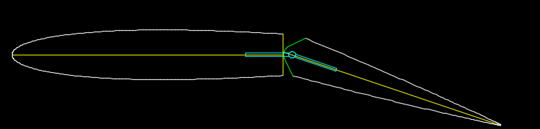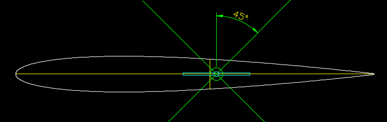 Kolejnym krokiem jest ustalenie o ile ster ma się wychylać. W moim przykładzie jest to 45°, więc pod takim kątem ze środka obrotu robię dwie proste: