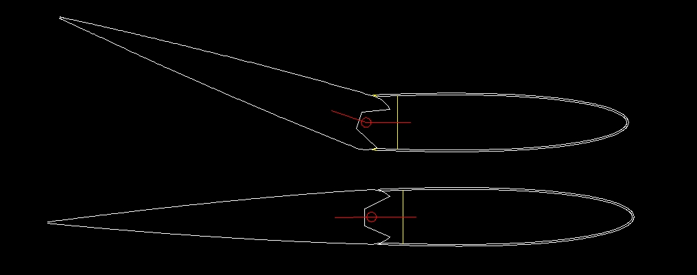 Ja odsuwam oś obrotu zawiasu nieco w stronę steru: