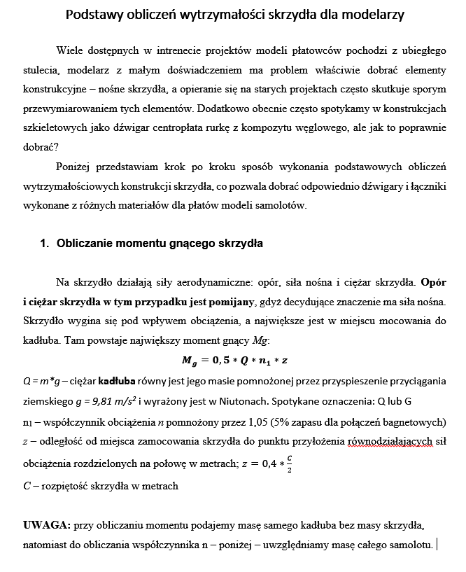 opracowałem poradnik wyjaśniający - mam nadzieję w prosty sposób - jak samemu policzyć i dobrać dźwigar skrzydła, łącznik; bagnet.