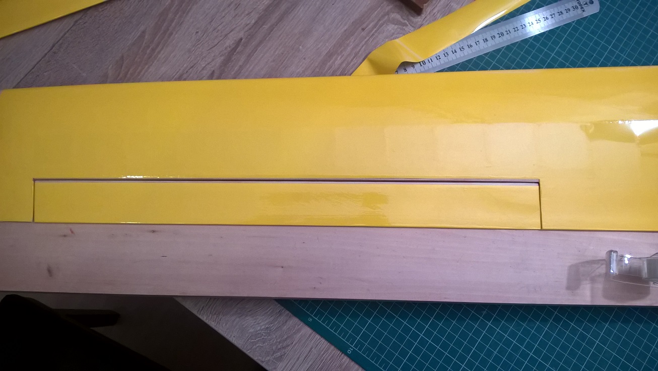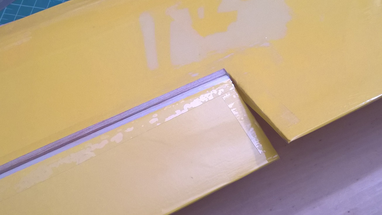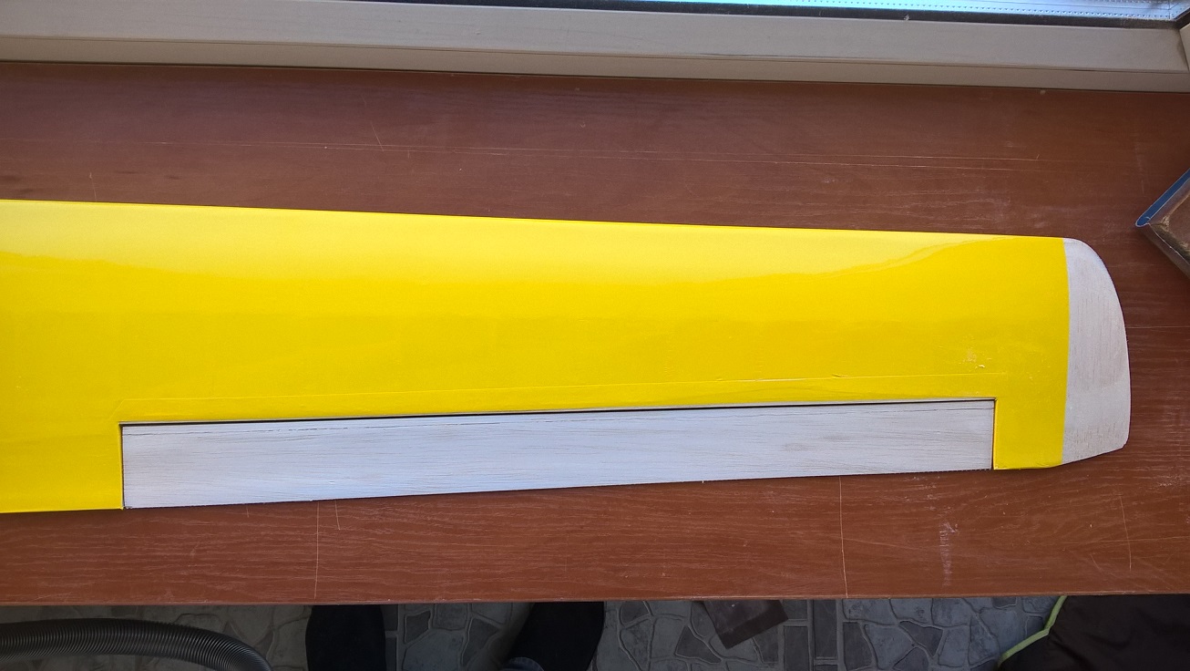 Po tym czasie odrywamy pozostałą taśmę z linii zawiasu, robimy to pod dość dużym kątem, przyciskając taśmę to krawędzi spływu lotki.