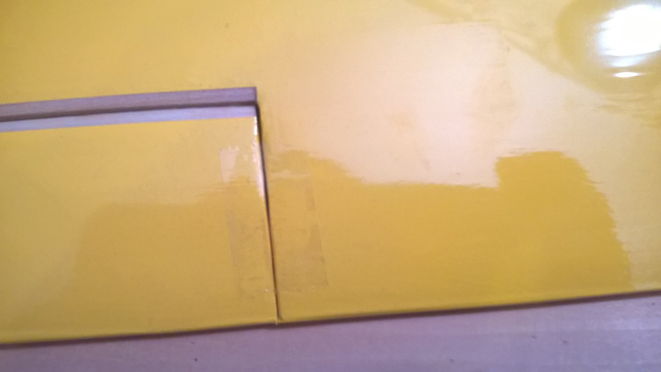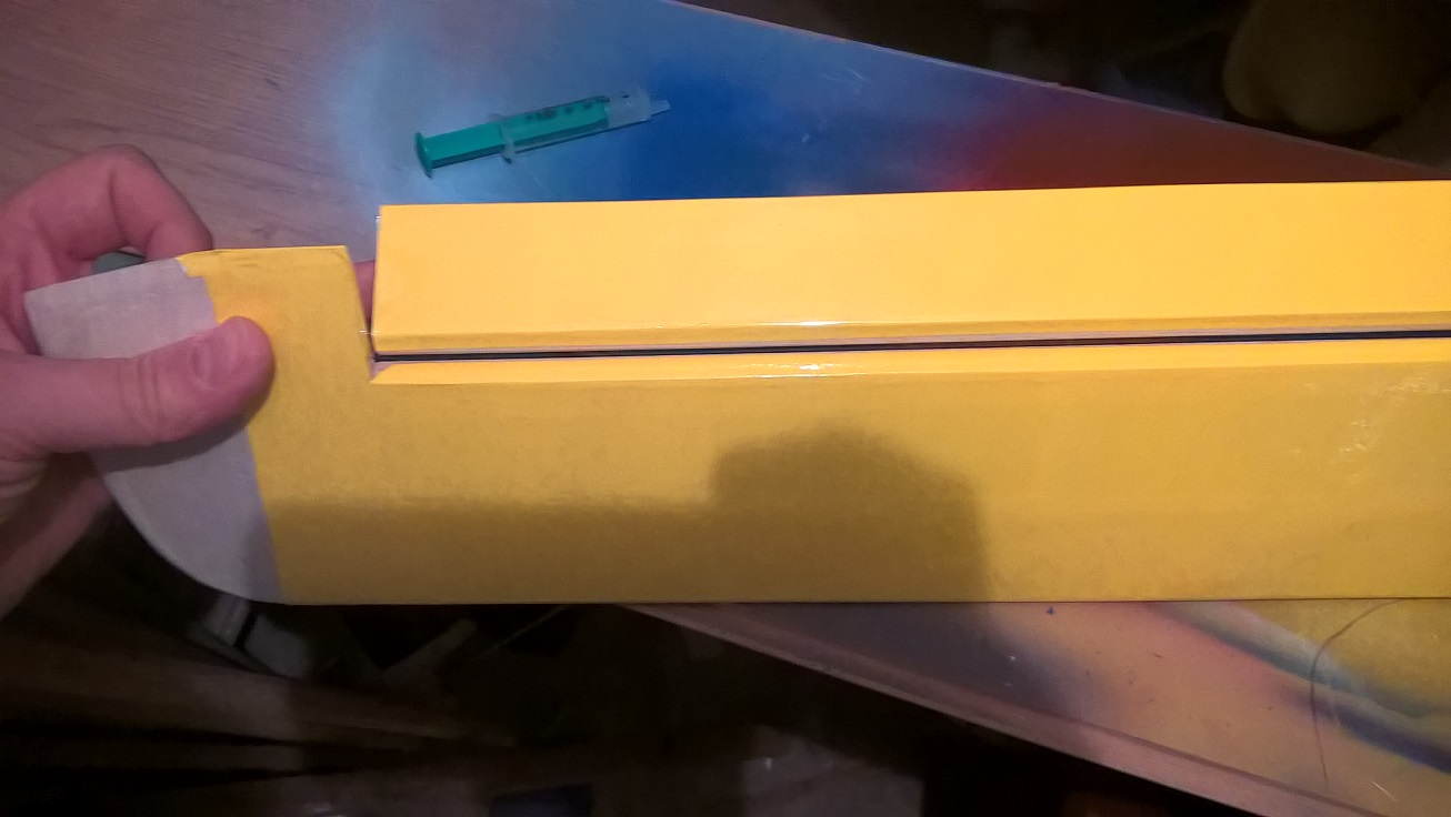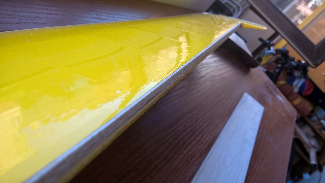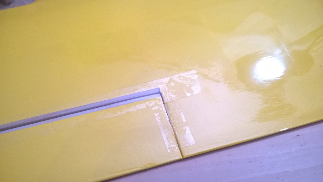 Po tym czasie odrywamy pozostałą taśmę z linii zawiasu, robimy to pod dość dużym kątem, przyciskając taśmę to krawędzi spływu lotki.
