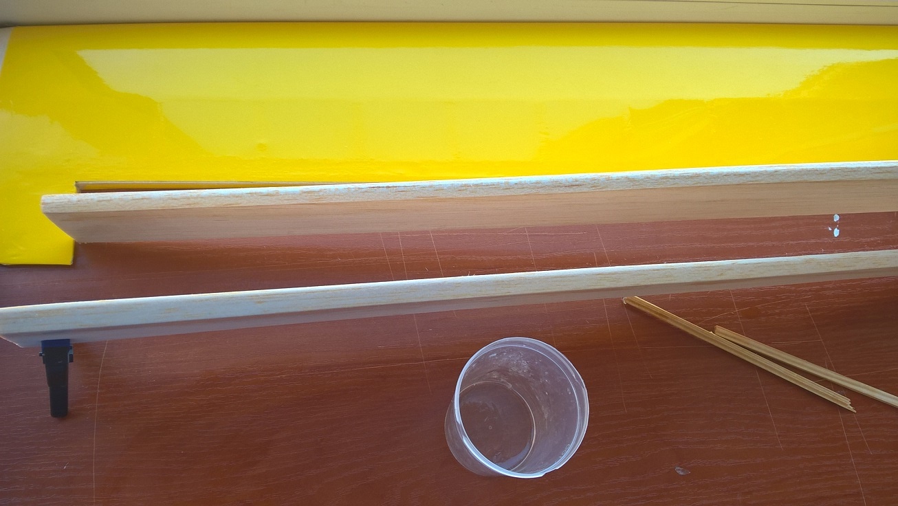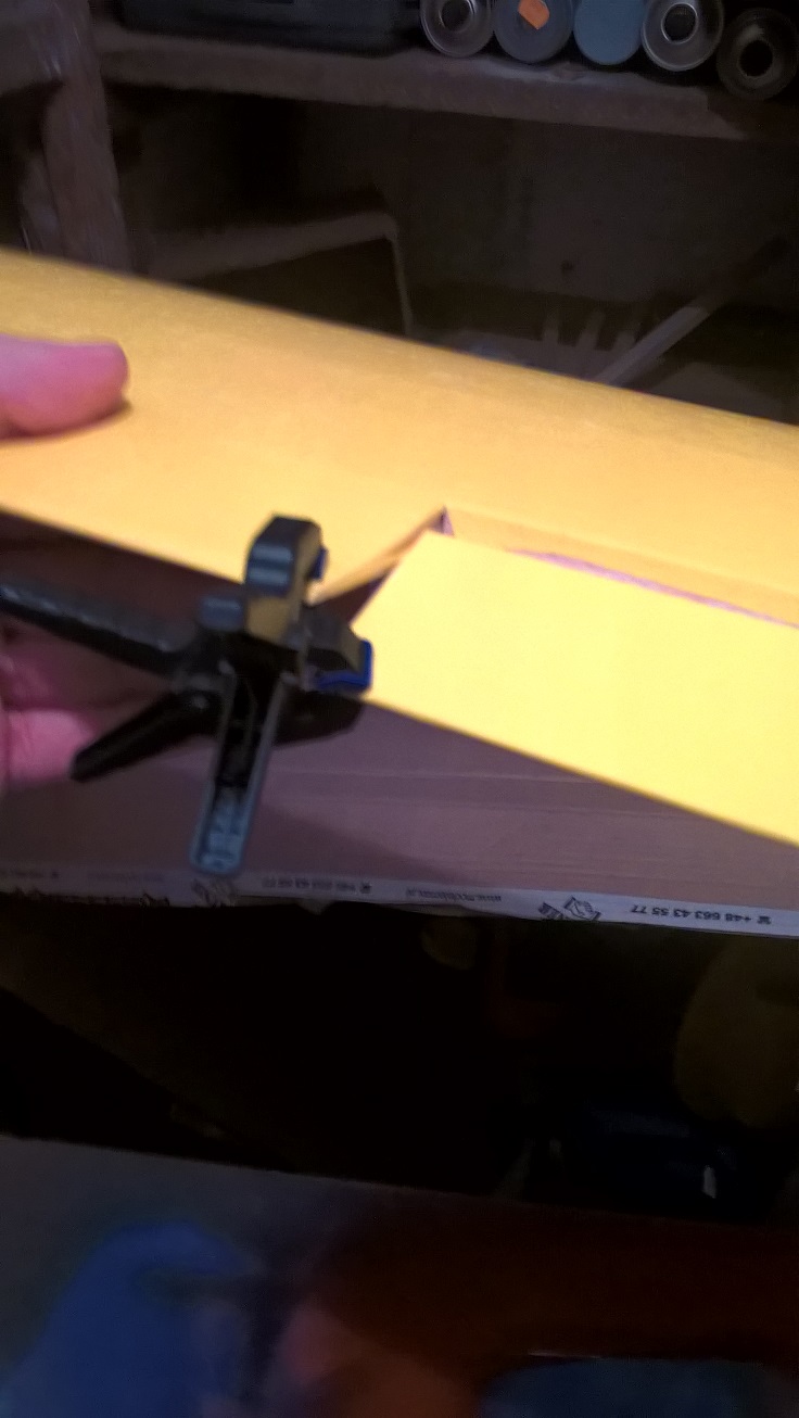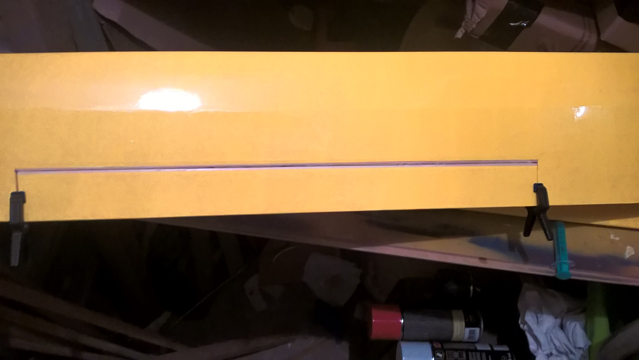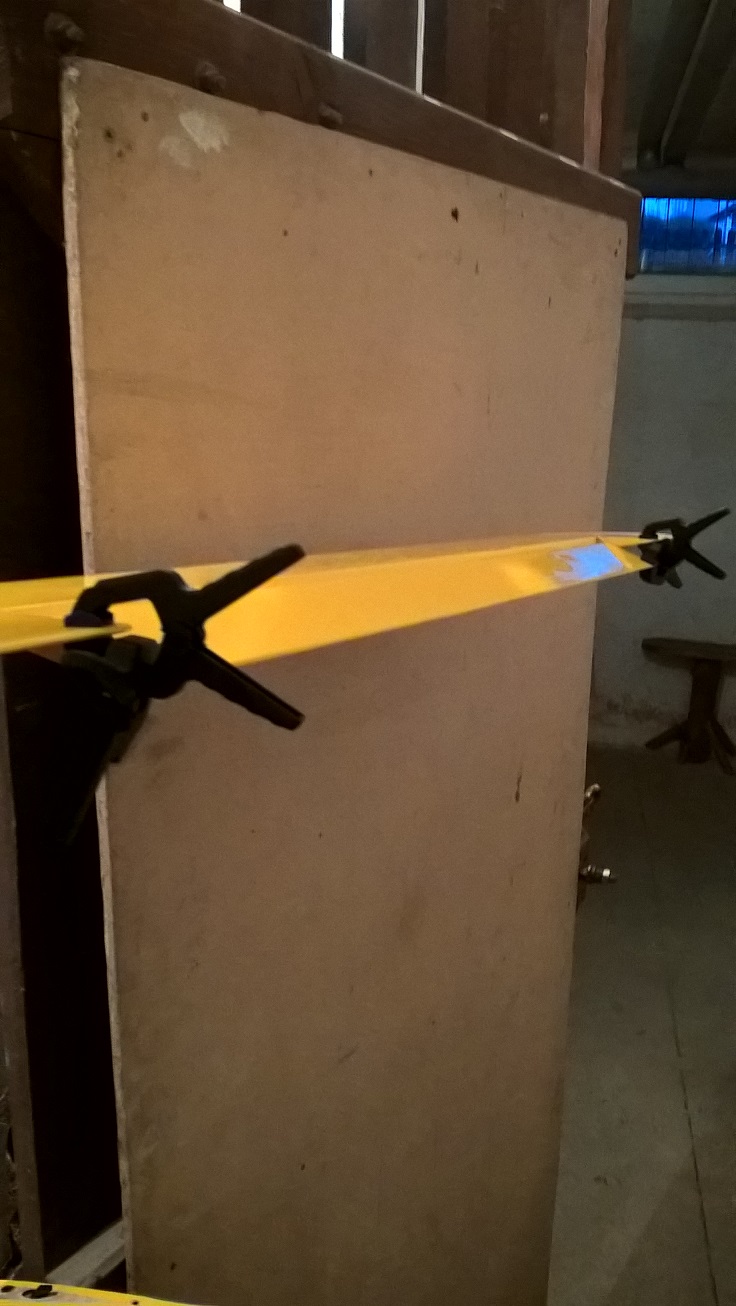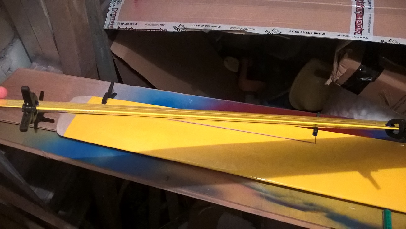 Po tym czasie, ustawiam lotkę na pozycji zerowej i łapie ściskami tak daleko jak sięgną. Chodzi o to by wyrównać wysokość zawiasu lotki do linii skrzydła.