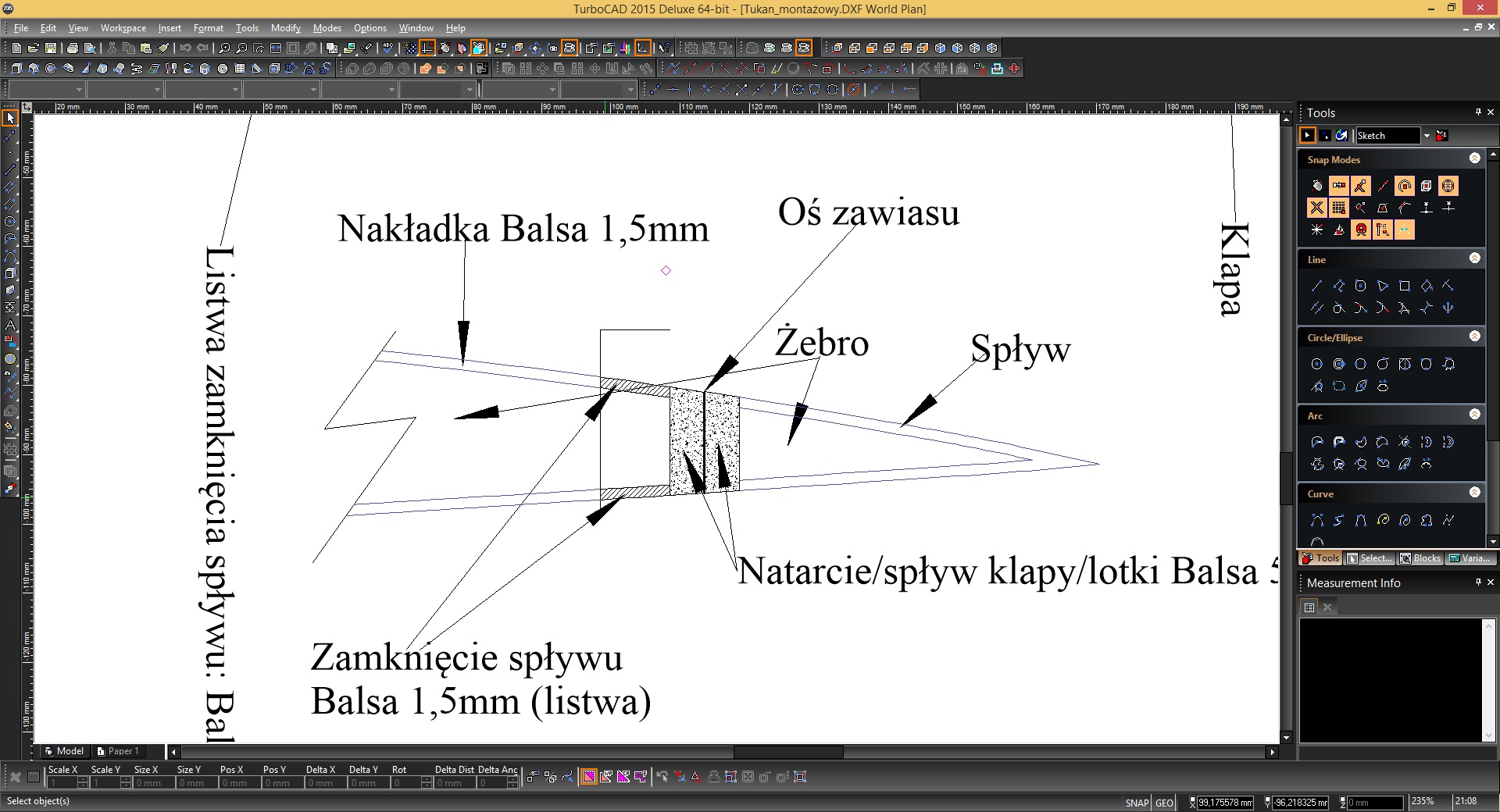 Następnie małymi ściskaczami łapię odchyloną lotkę i zostawiam na