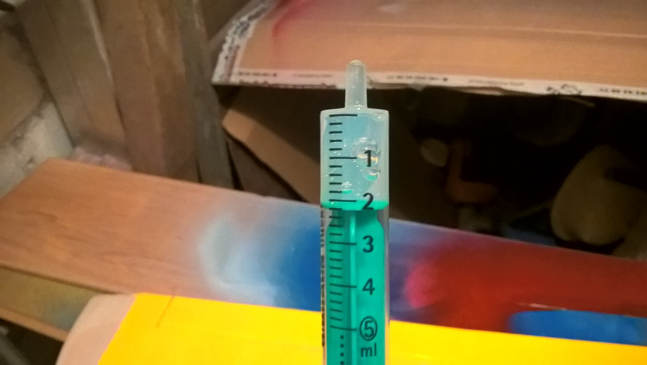 Zużywam 2ml silikonu na zawias. Odmierzam i aplikuje silikon strzykawką.