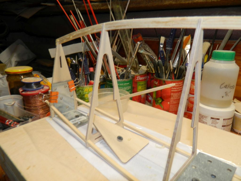 Zapachniało w mojej "modelarni" spalenizną, bynajmniej nie od pieca czy fajek ;) , ale od formatek które dzisiaj odebrałem z lasera :lol: . Można budować dalej :) . Do dalszej budowy potrzebne mi były trzy elementy: listwa ze sklejki topolowej w części ogonowej i dwie części wzmacniające centralną część kadłuba, materiał ten sam. W międzyczasie wkleiłem między górne podłużnice ukośne listwy wzmacniające /sosna 4x4/.