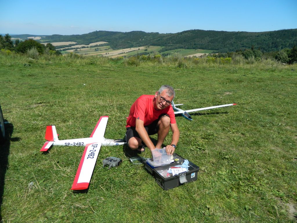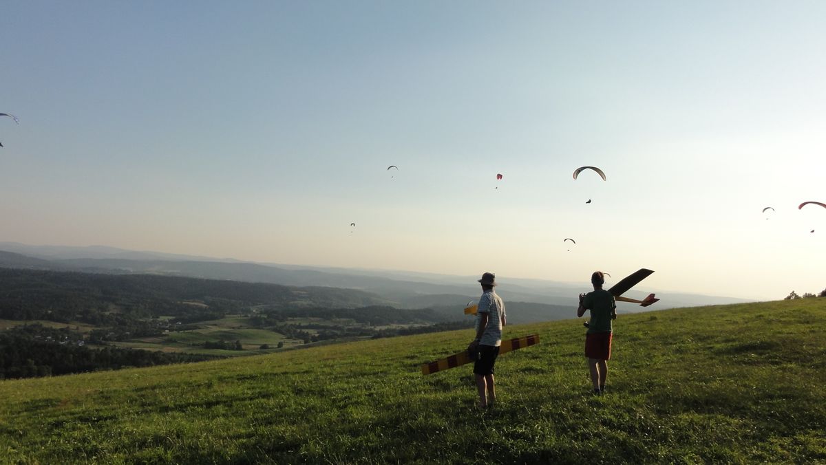 Później wiatr odchylił się ≈30° w kierunku zachodnim, warunki osłabły, na kocach na szczycie usiadło sporo ludzi na kocach gdzie było idealne płaskie miejsce do lądowania - zwinęliśmy modele ruszając na pieszą wyprawę